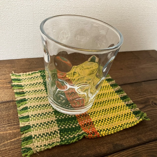 既成概念にとらわれず、思いのままに織るさをり織り。 こちらのコースターは、福祉作業所で障がいのある方々が織り上げた素敵なさをり織りを使って製作したオリジナルの一点物商品です。 さをり織りと麻キャンバス(麻100%)のリバーシブルでお使いいただけます。 デザイン&製作は、フリーランスでデザイン活動をしている守屋理恵氏(障がい児ママ)に依頼しています。 尚、こちらの商品はエイムワイがさをり織りを福祉作業所から買い取りして商品化し、更に利益の一部を福祉作業所に還元しています。 サイズ: 約9cm×9cm (さをり織り:アートかれん)