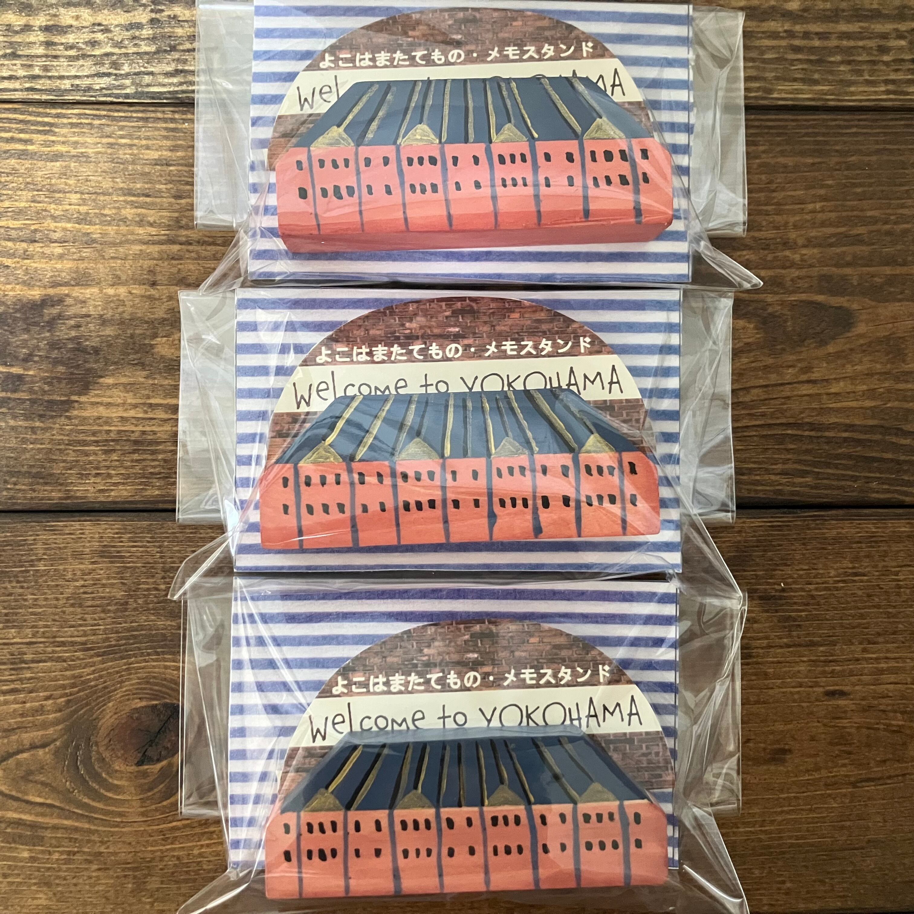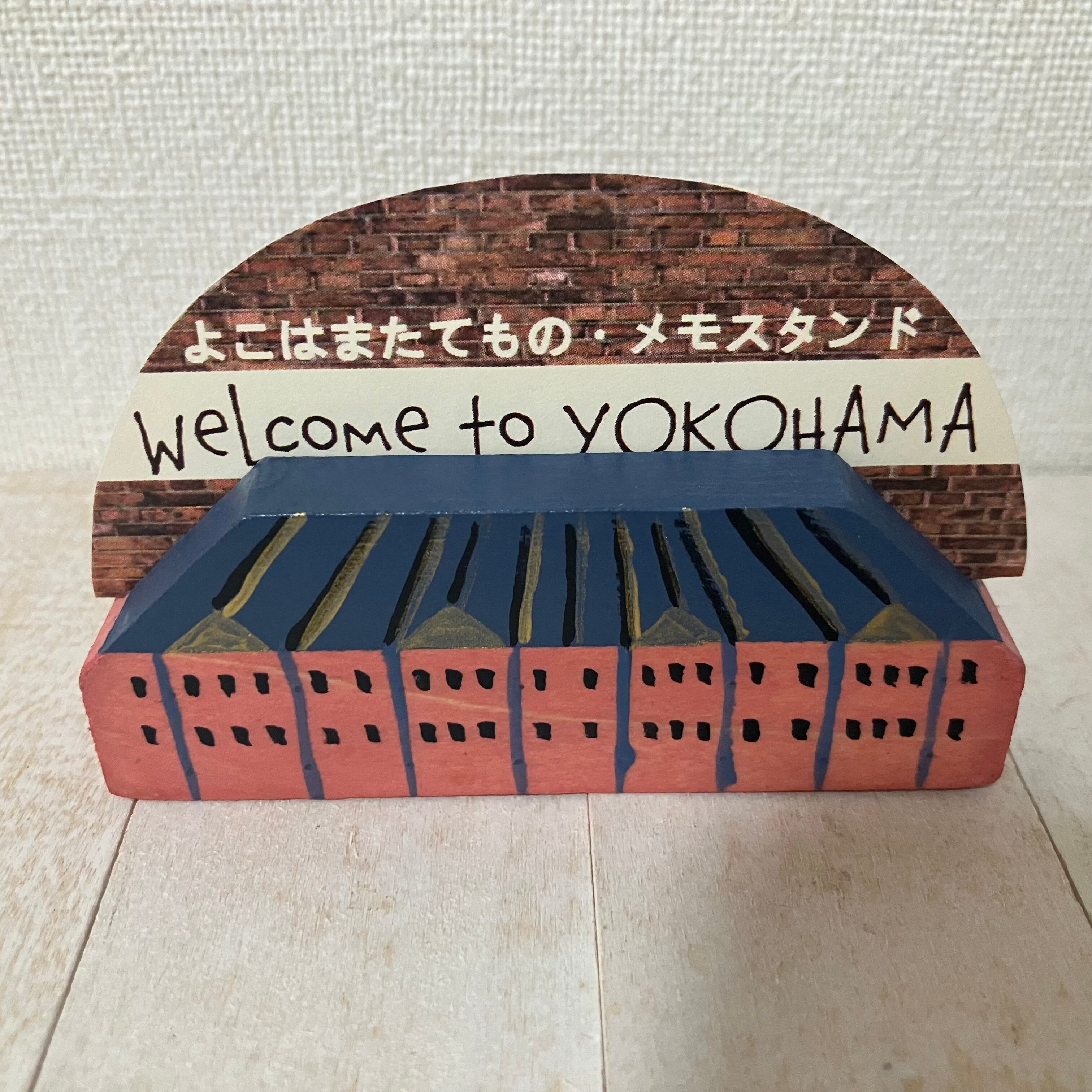 横浜のシンボル的な建物をモチーフにした木製のメモスタンドです。