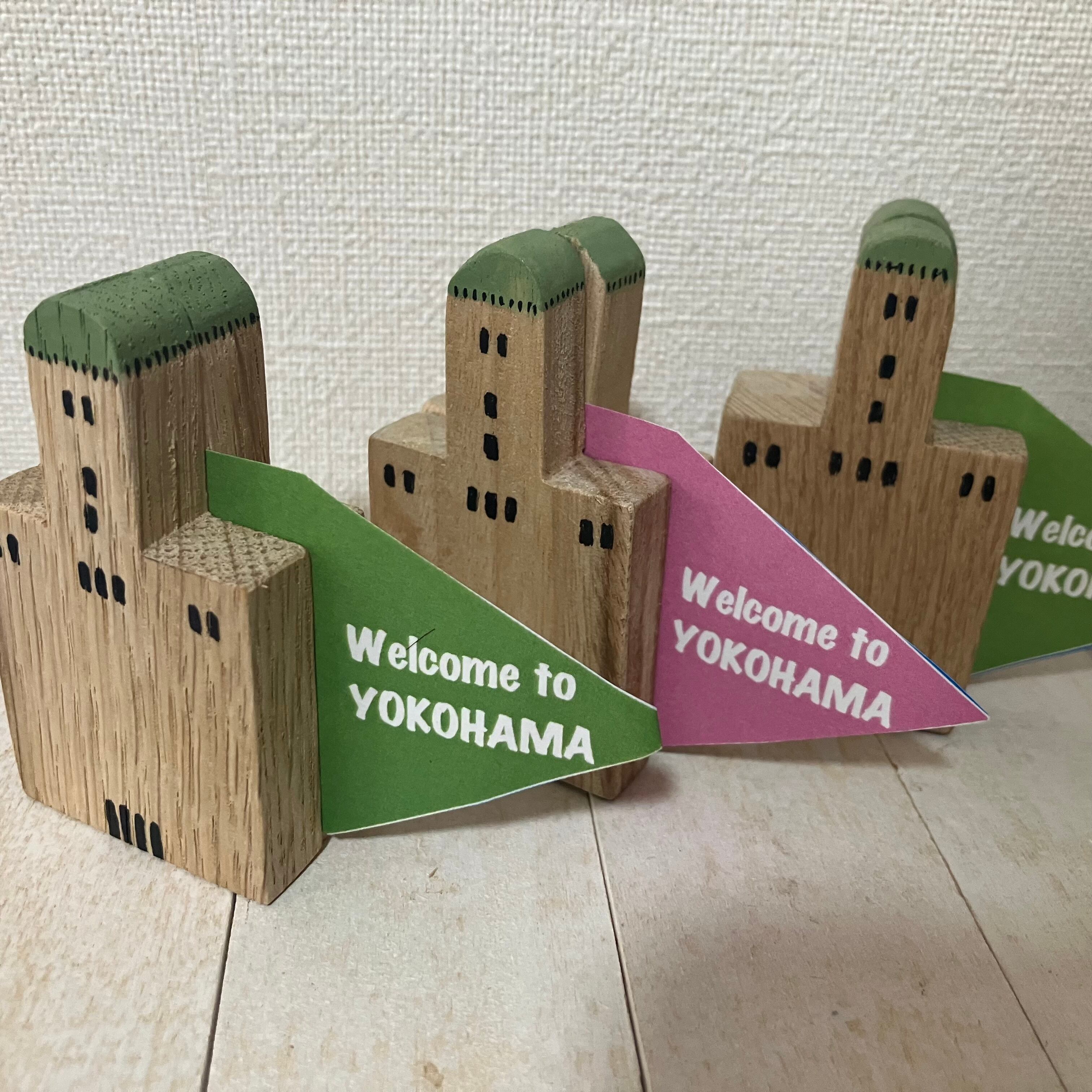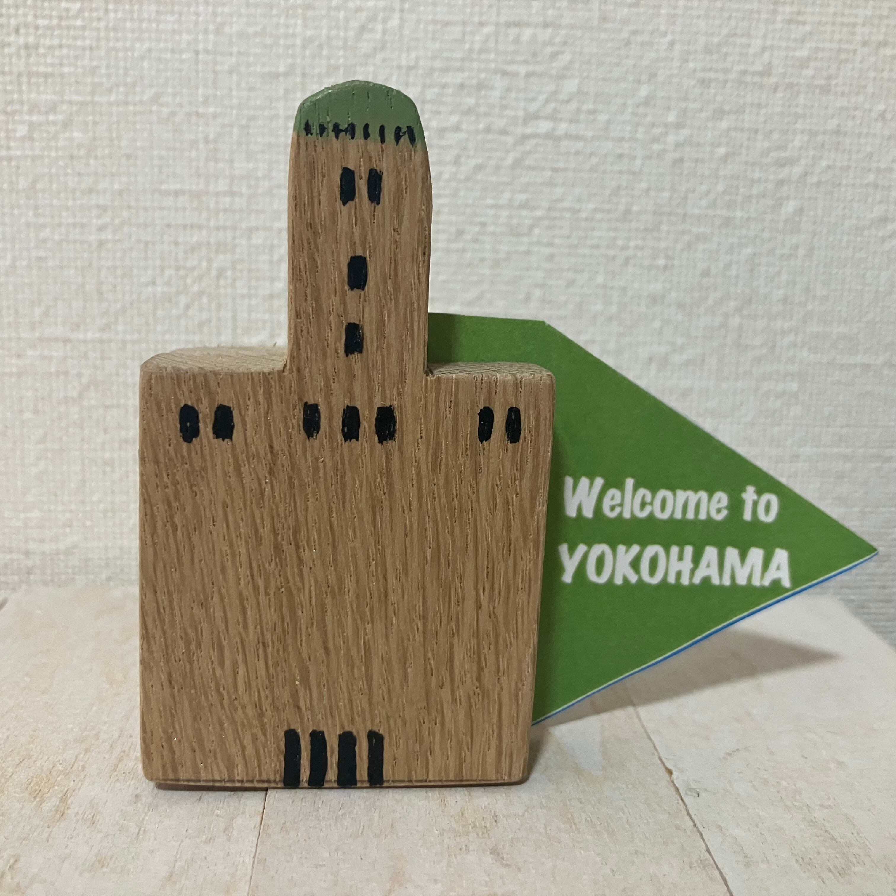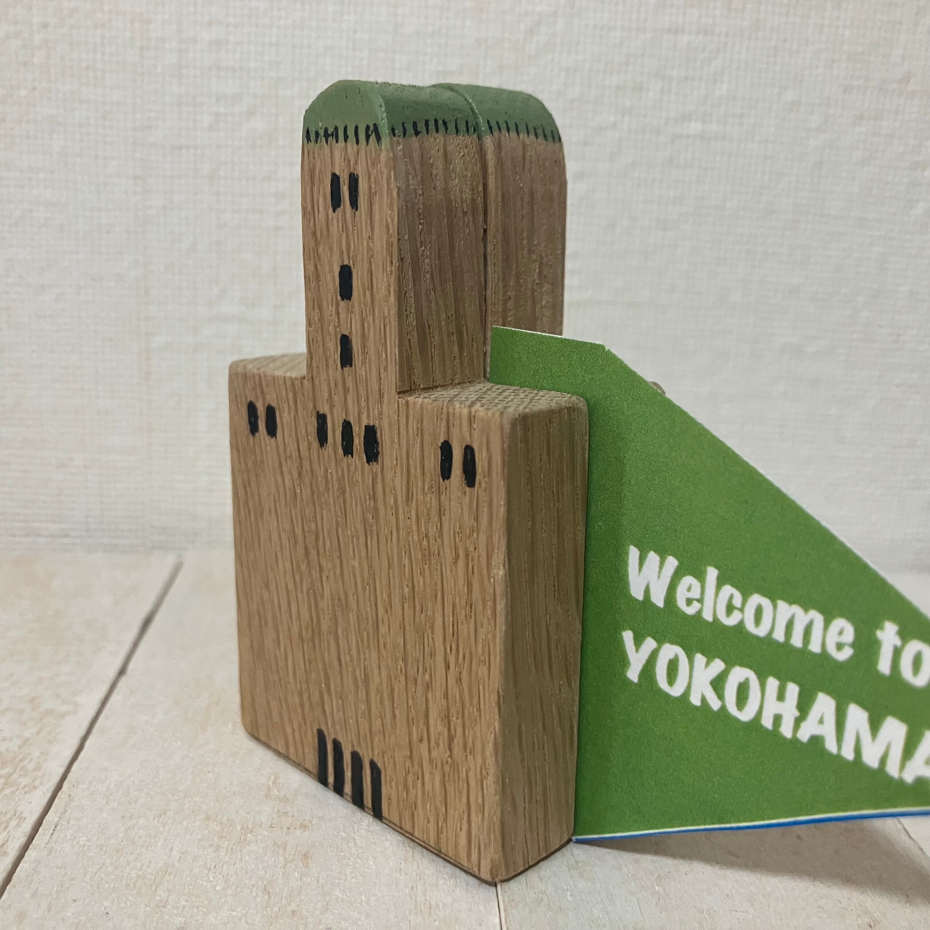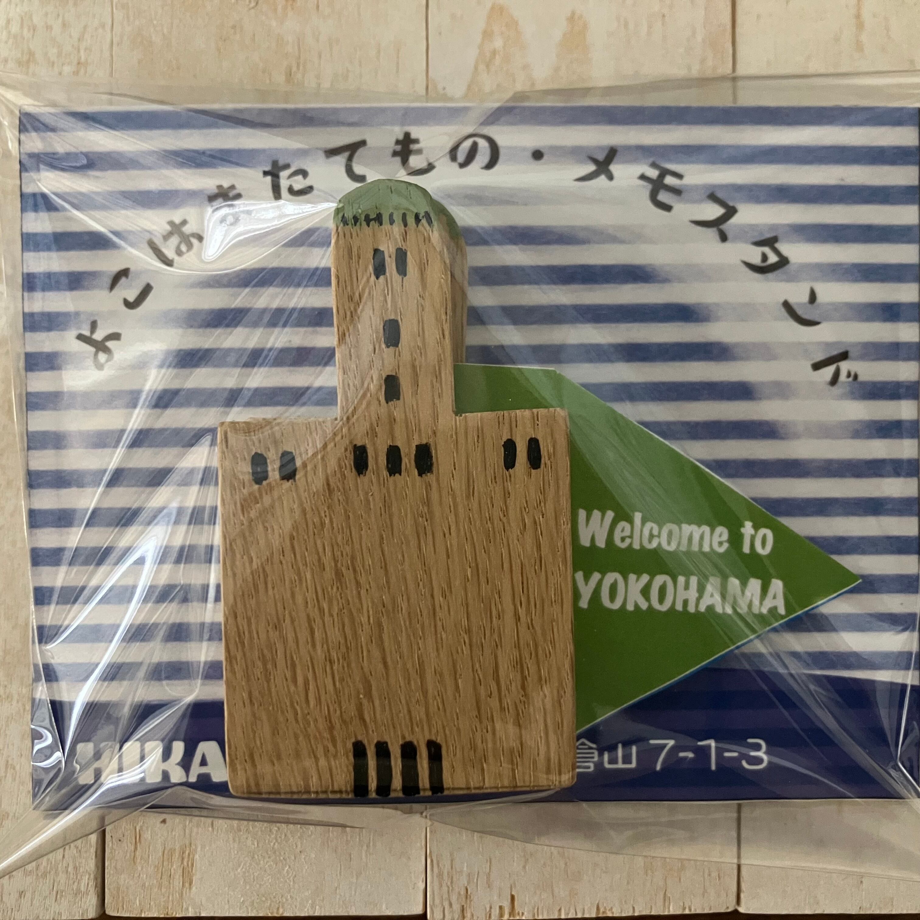 横浜のシンボル的な建物をモチーフにした木製のメモスタンドです。