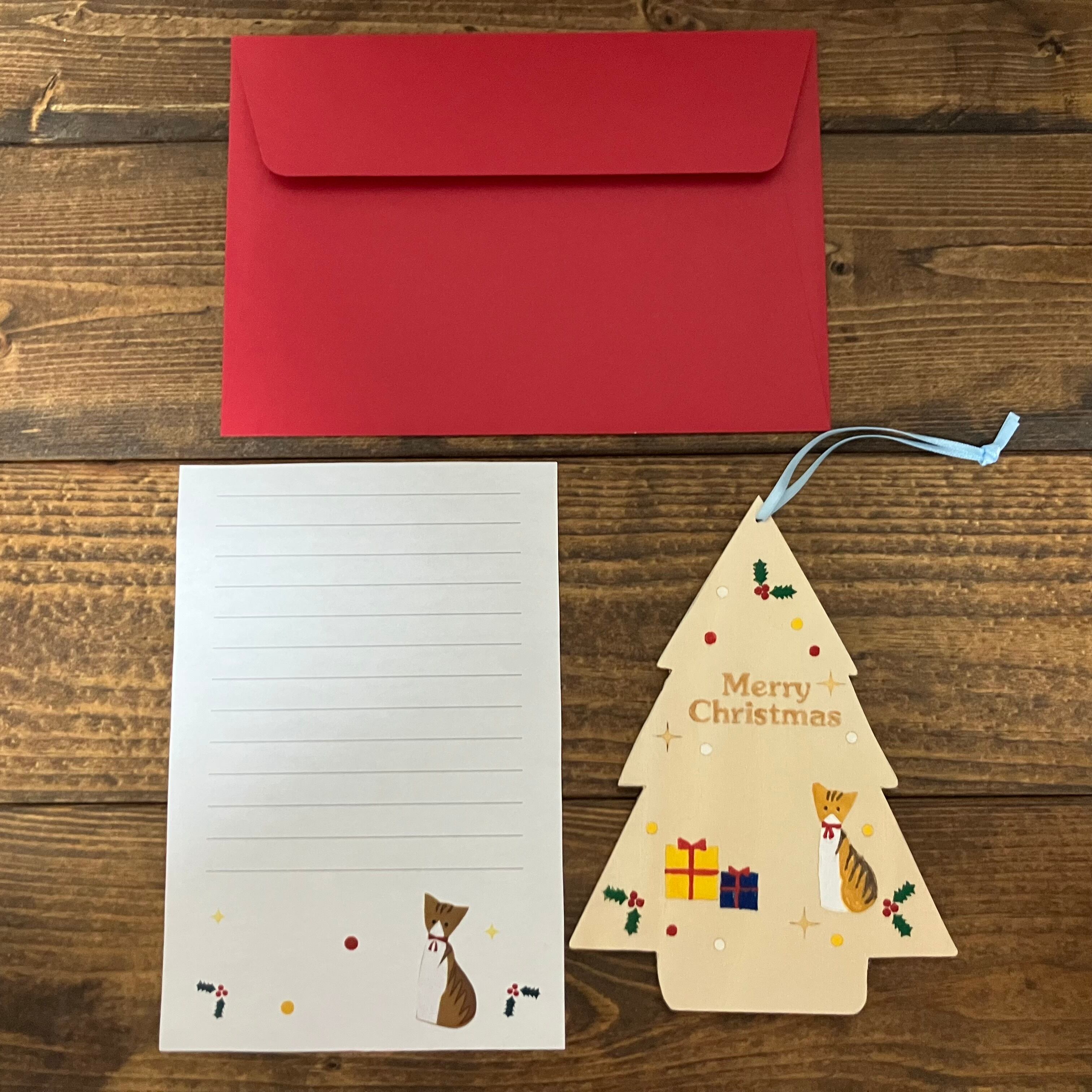 クリスマスカード(木のオーナメント、便箋・封筒付)
