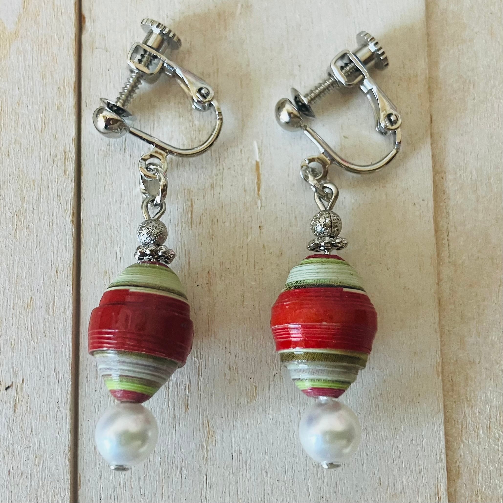 ペーパービーズは軽いのでイヤリングに向いていますが、しっかりコーティングされているので汗や雨には強いです。