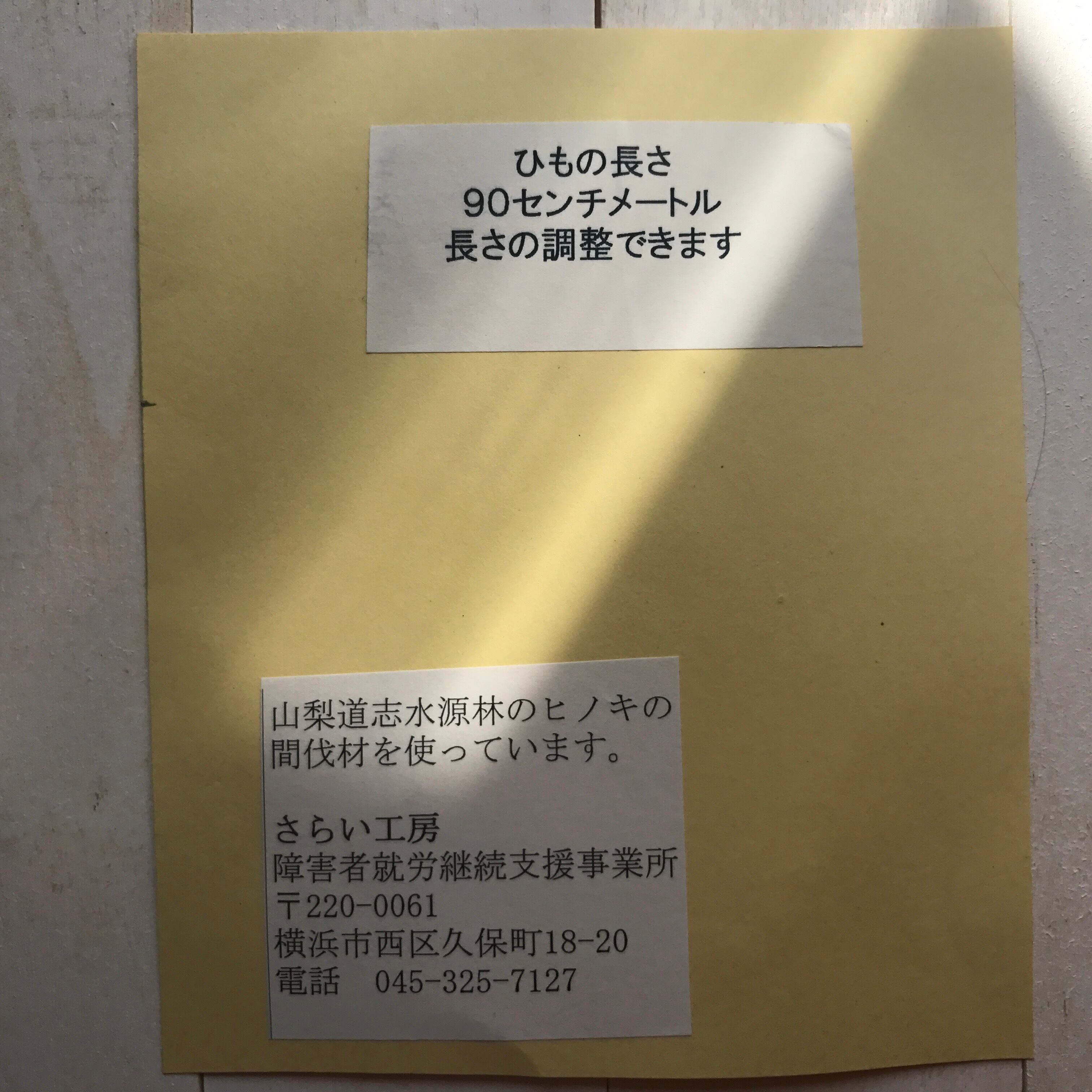 木は、山梨道志水源林のヒノキの間伐材を使っています。