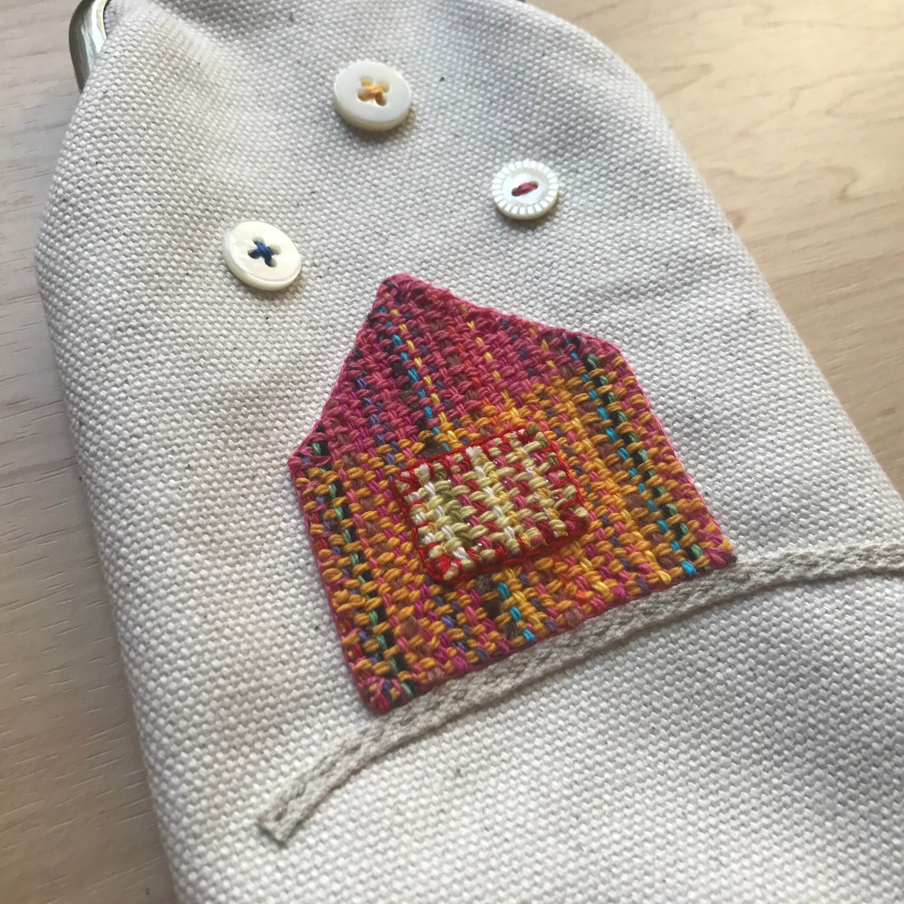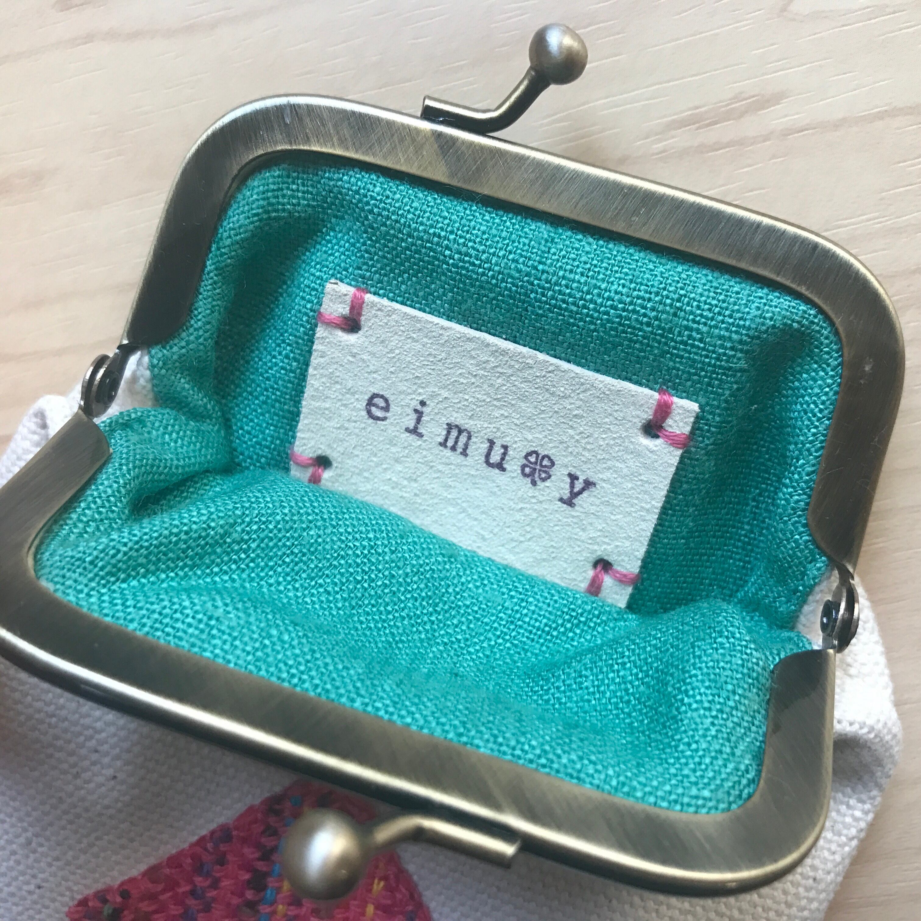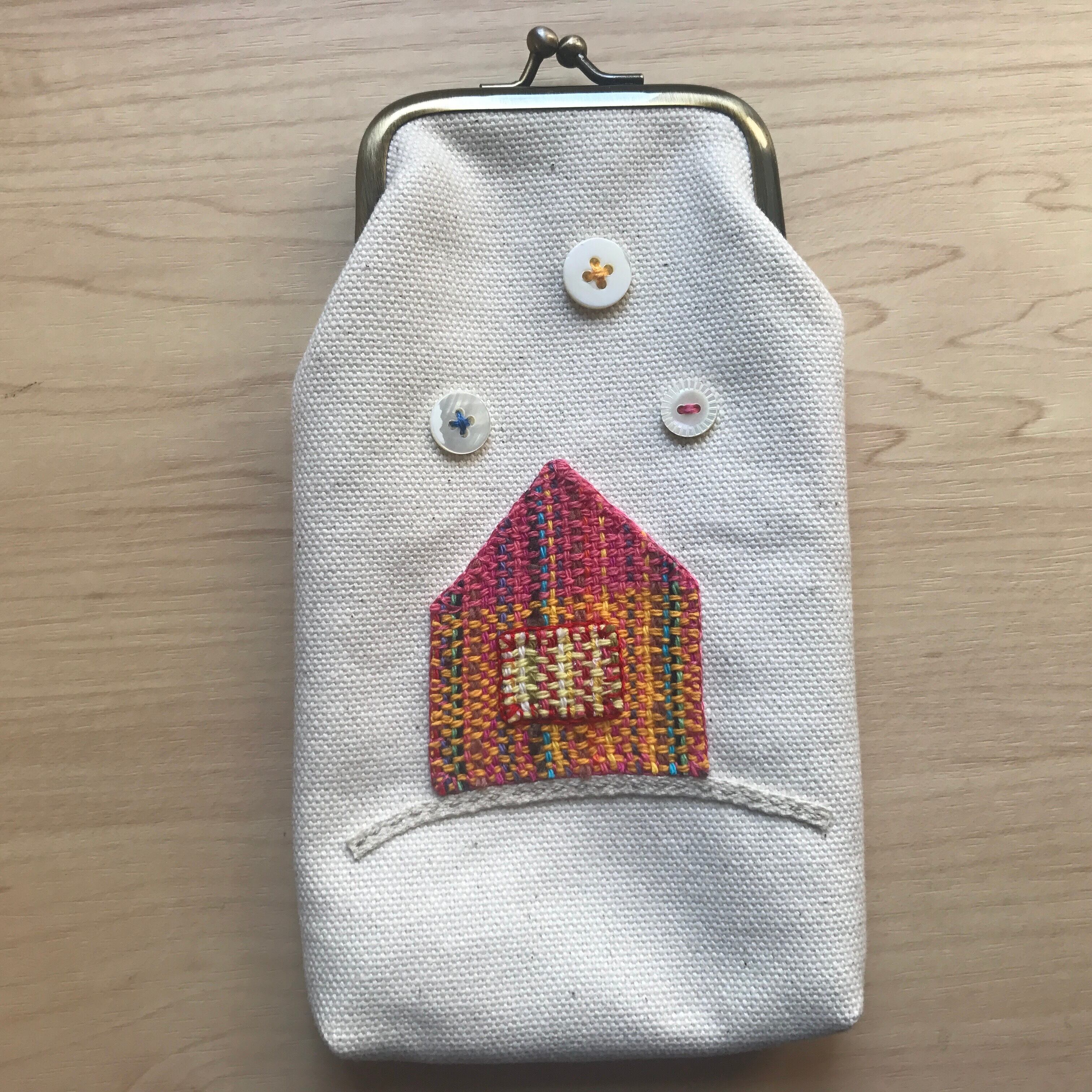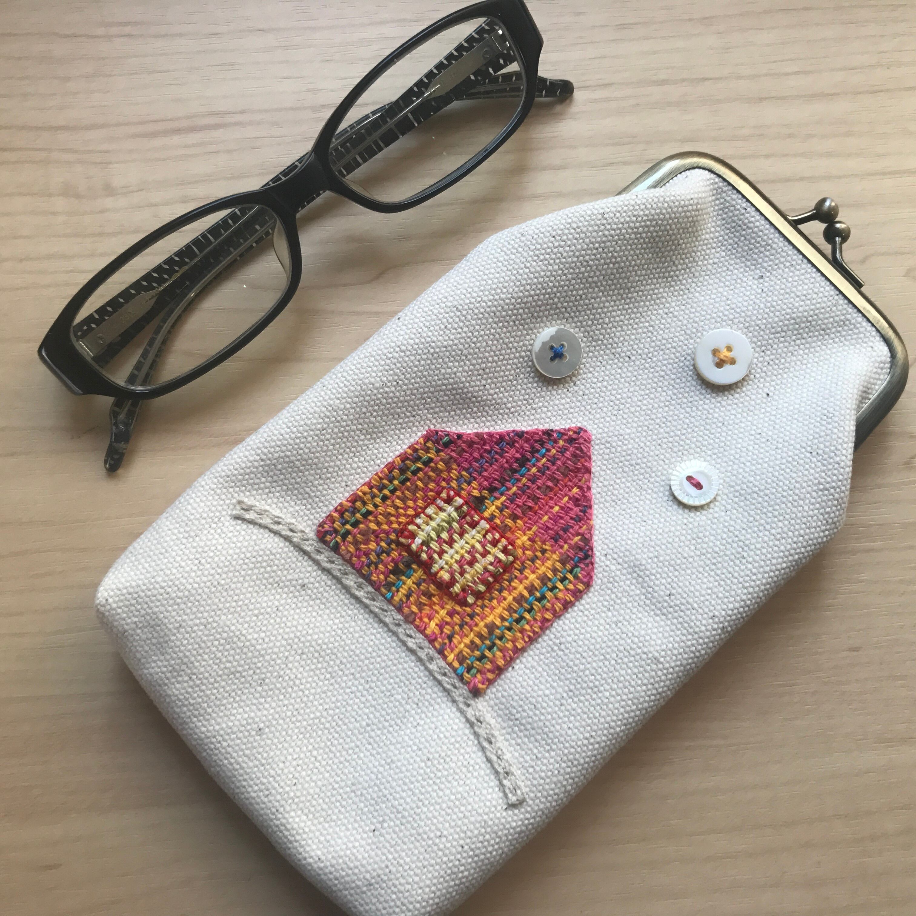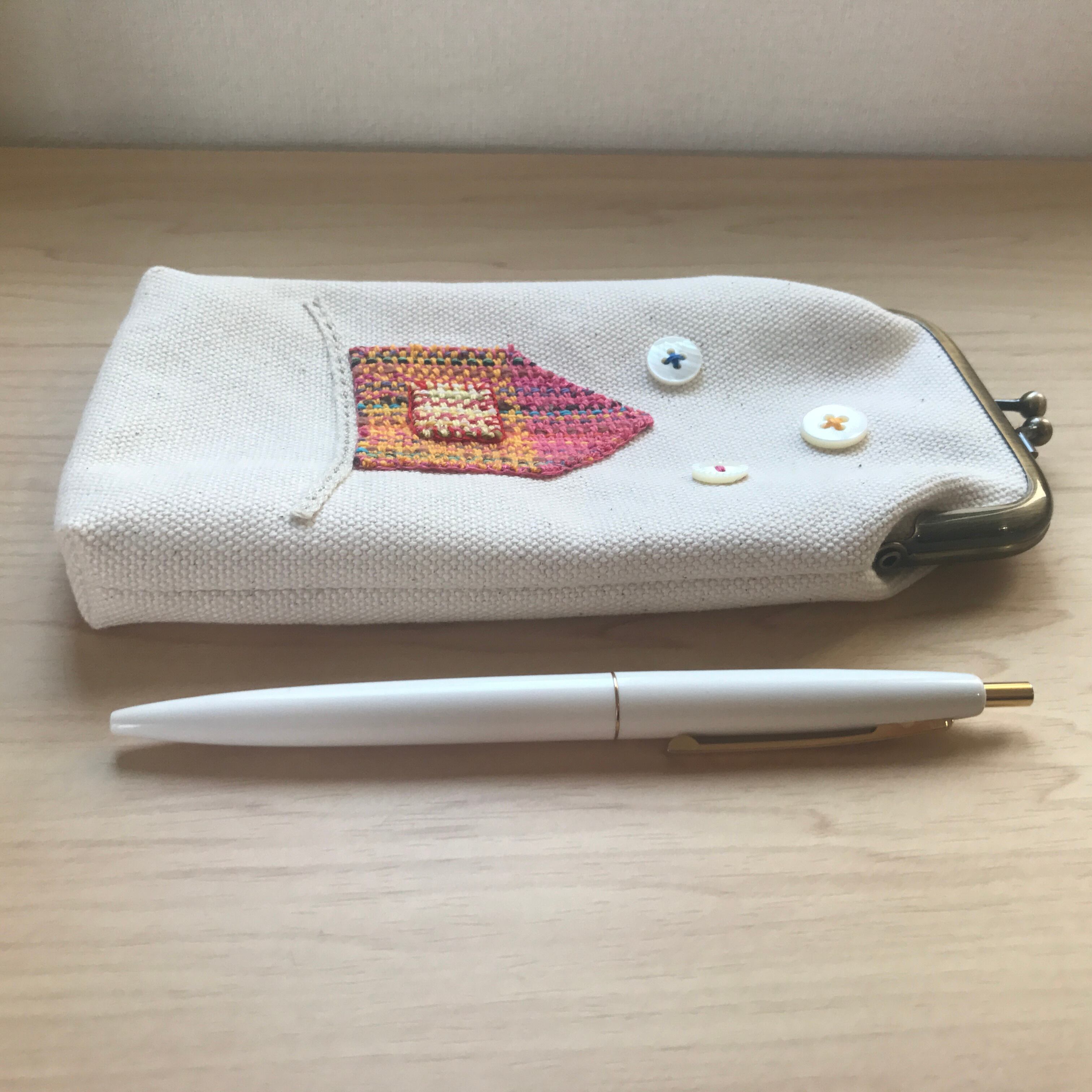 こちらのキャンバス地のがま口ポーチは、横浜市神奈川区アトリエもくせいさんのさをり織りを使ってデザインしたオリジナルの一点物商品です。