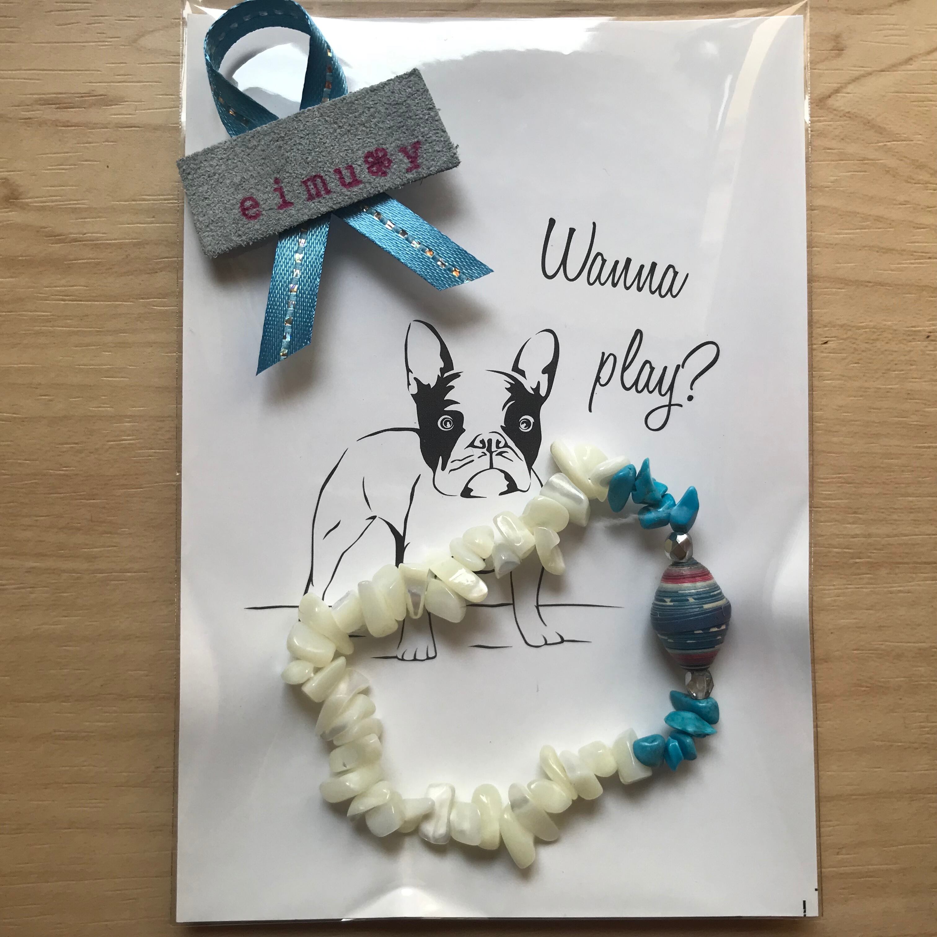 2005年のパキスタン大震災で被災し心や体に障がいを持ちながら施設で暮らす女性たちが作ったペーパービーズを使って、障がい児ママ4人で結成したeimuyアクセサリー部が商品化したブレスレットです。
