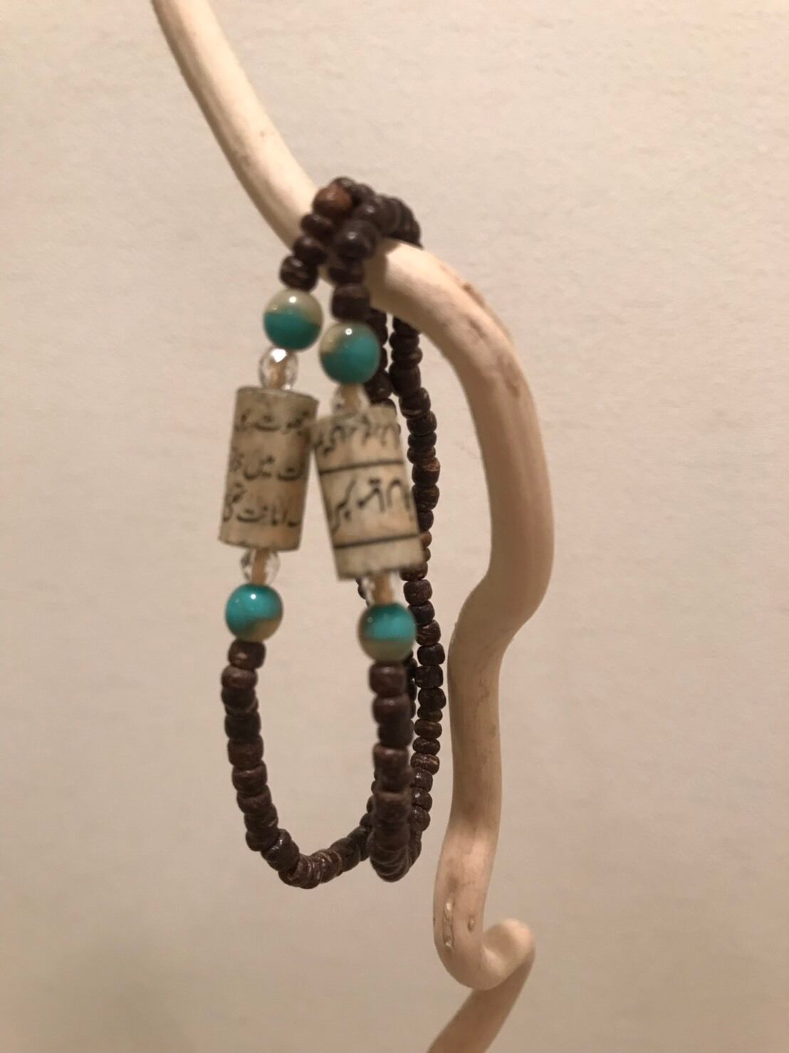 2005年のパキスタン大震災で被災し心や体に障がいを持ちながら施設で暮らす女性たちが作ったペーパービーズを使って、障がい児ママ4人で結成したeimuyアクセサリー部が商品化したブレスレットです。