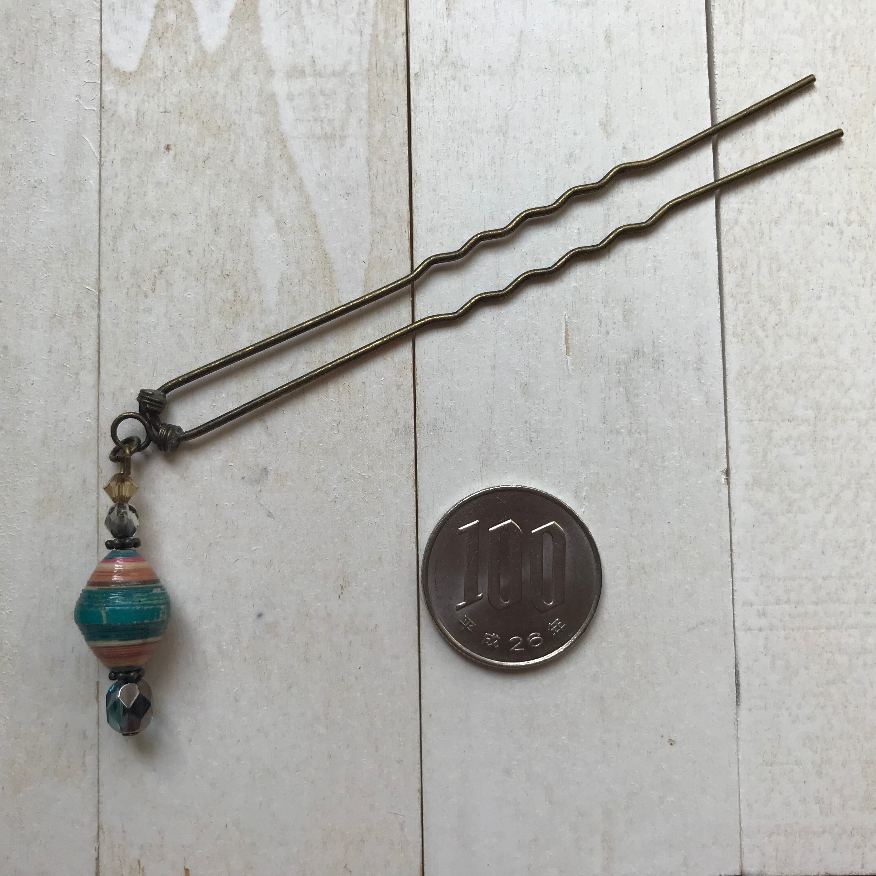2005年のパキスタン大震災で被災し心や体に障がいを持ちながら施設で暮らす女性たちが作ったペーパービーズを使って、障がい児ママ4人で結成したeimuyアクセサリー部が商品化したかんざしです。
