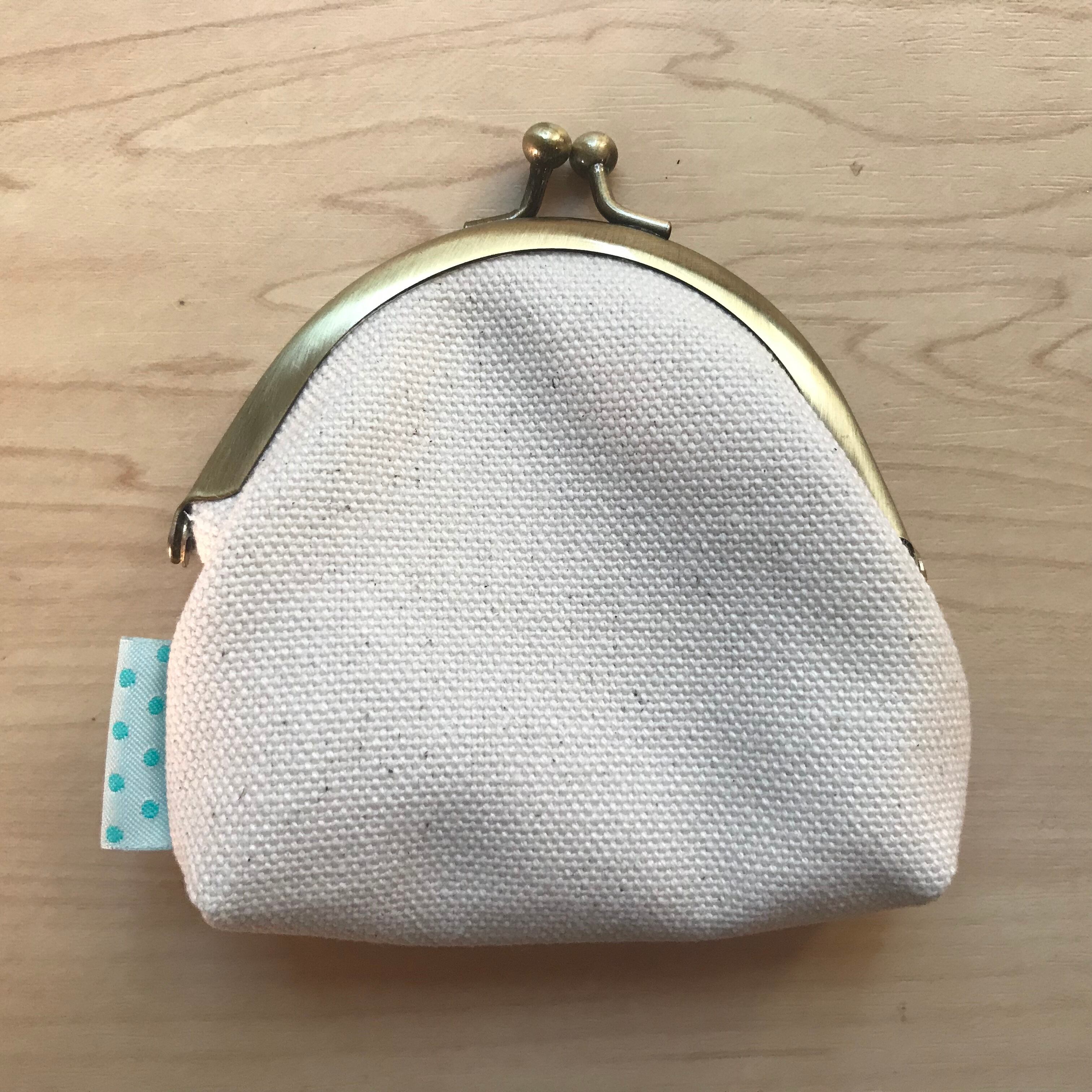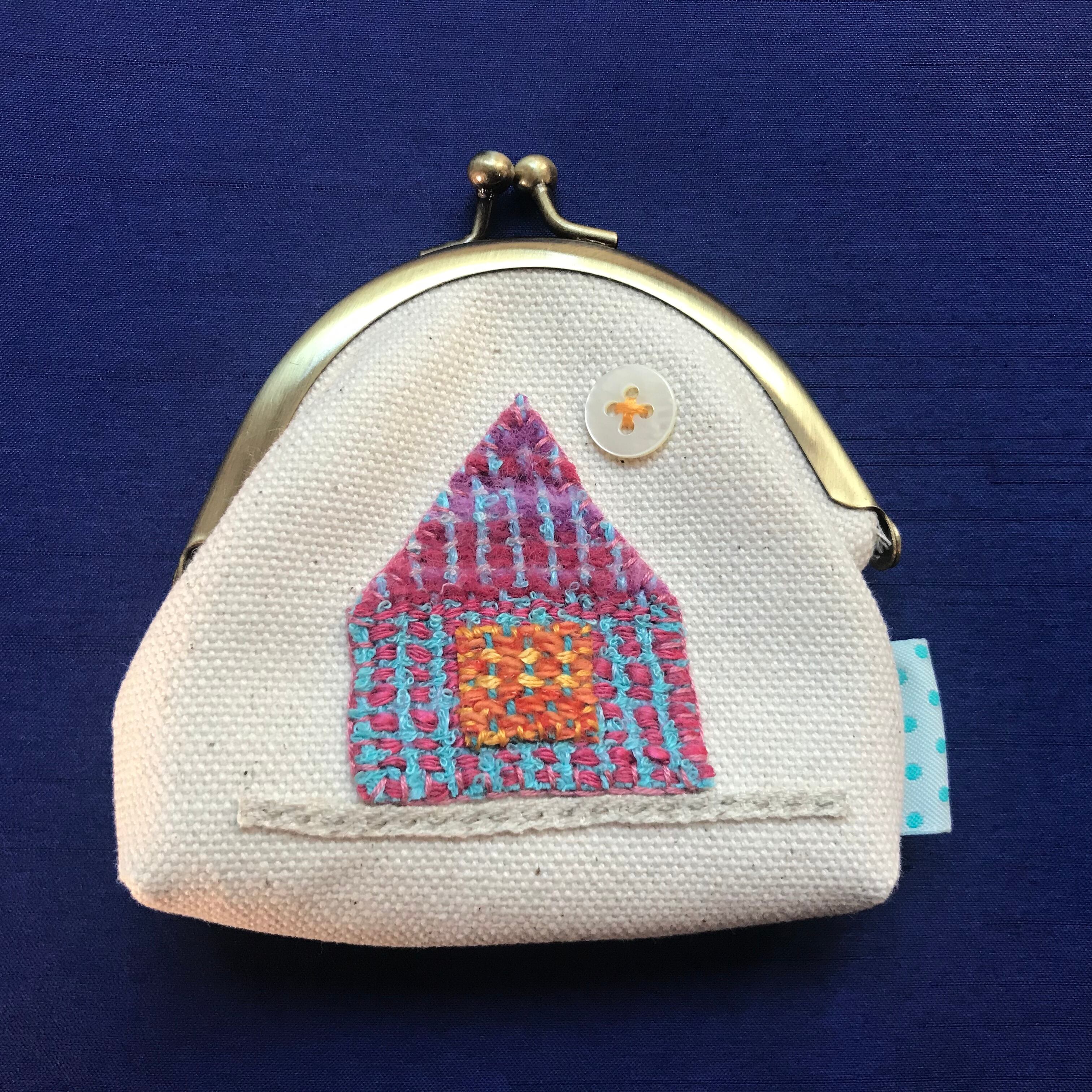 こちらのキャンバス地のがま口小銭入れは、横浜市神奈川区アトリエもくせいさんのさをり織りを使ってデザインしたオリジナルの一点物商品です。