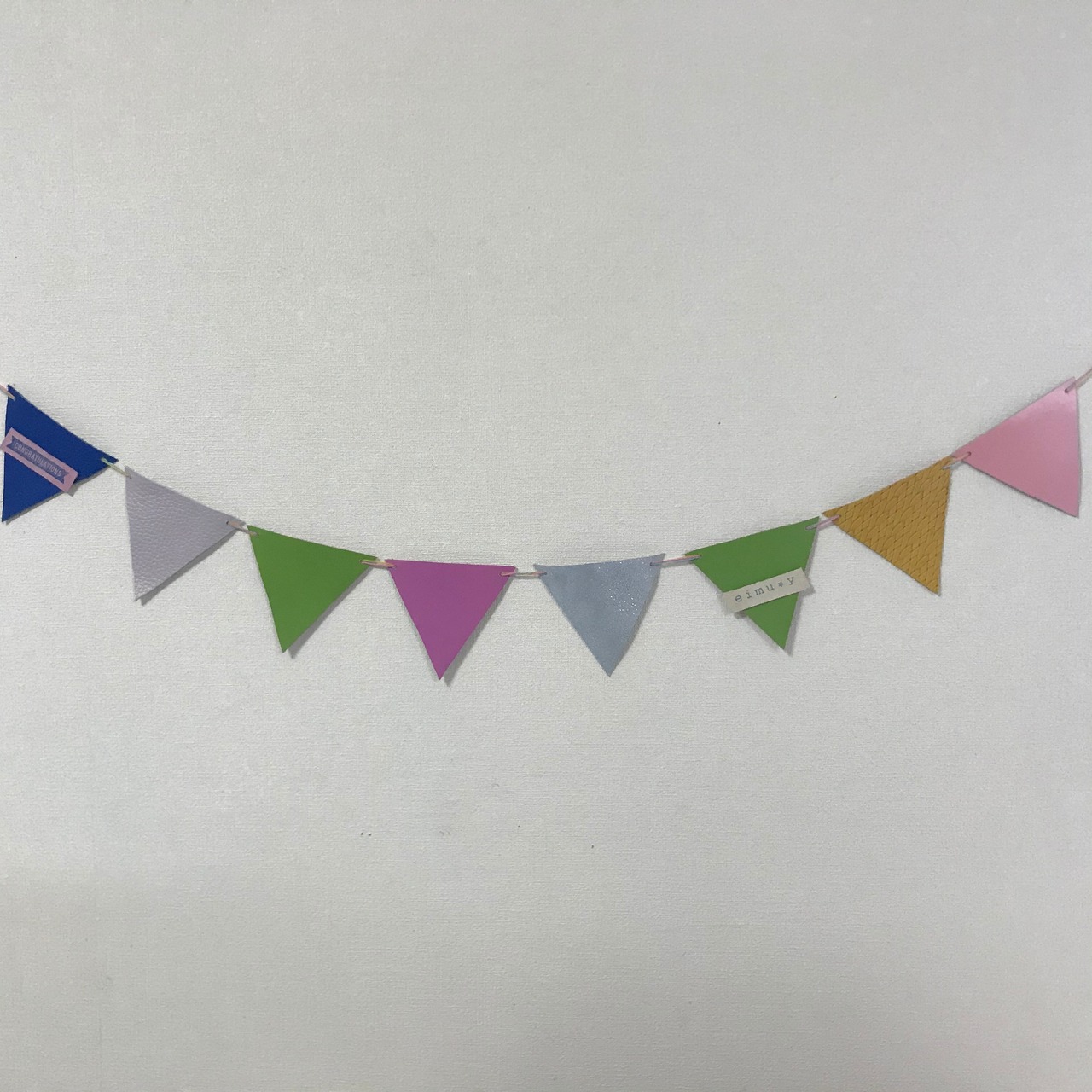 革で作ったeimuyオリジナルのガーランドです。