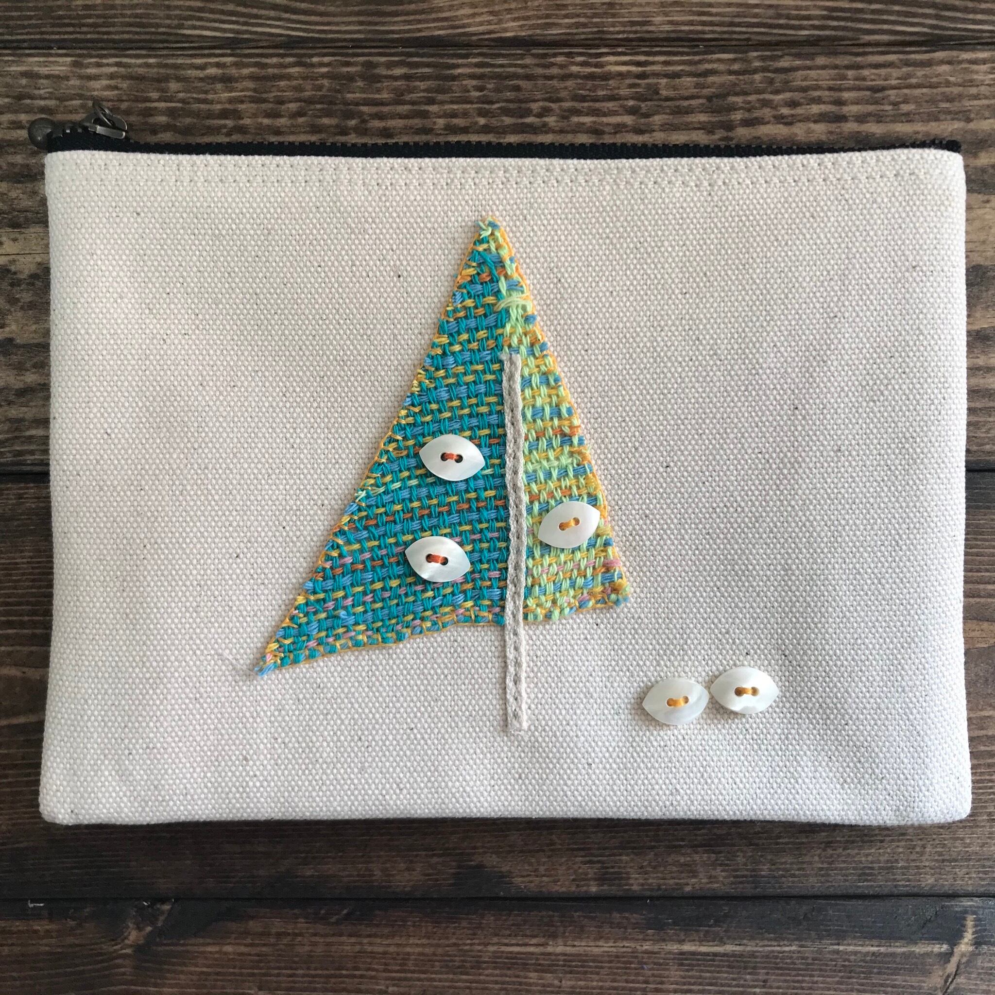 こちらのキャンバス地のポーチは、福祉作業所で障がいのある方々がこつこつと織り上げた素敵なさをり織りを使ってデザインしたオリジナルの一点物商品です。