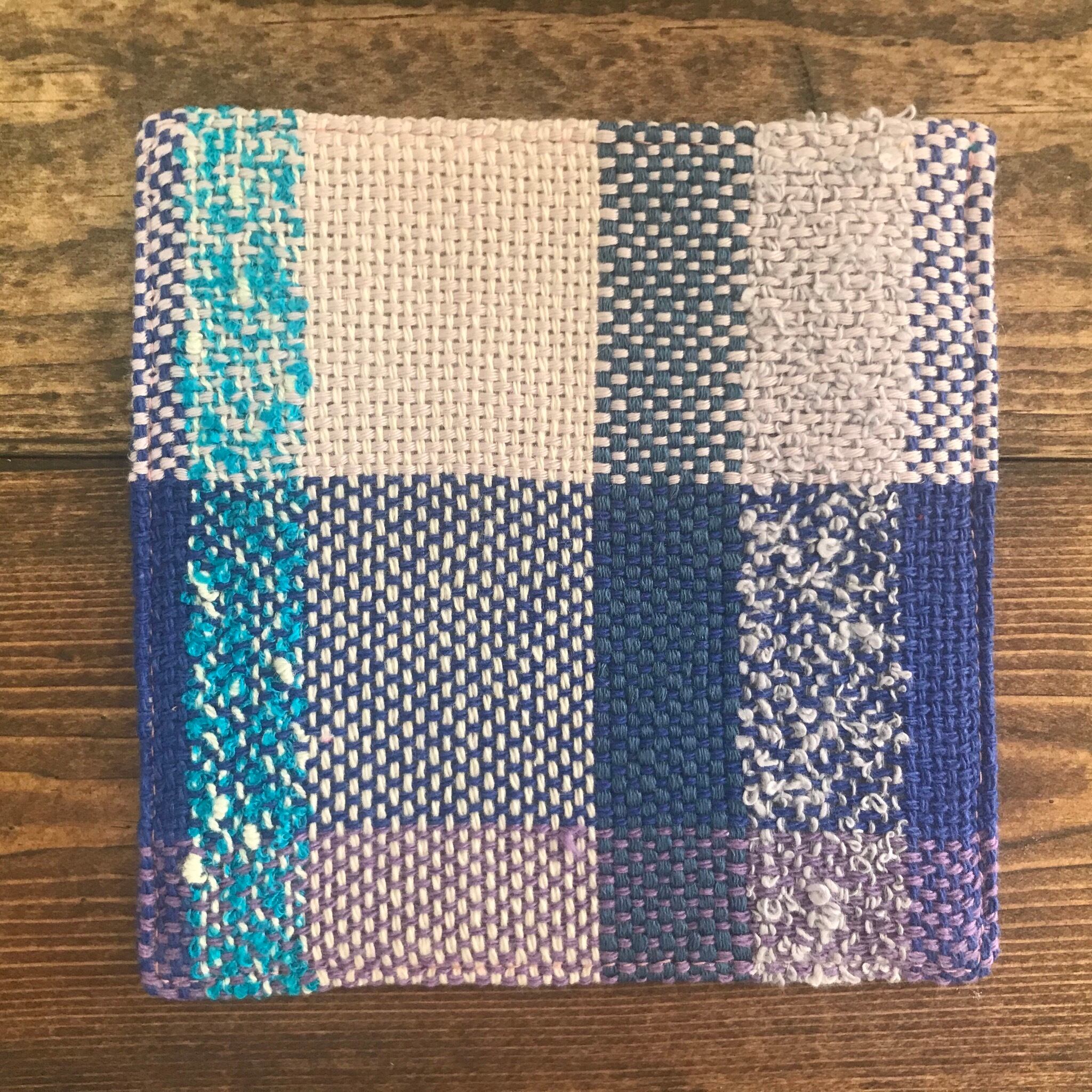 こちらのコースターは、横浜市港北区のアートかれんさんのさをり織りを使ってデザインしたオリジナルの一点物商品です。さをり織りと帆布のリバーシブルでお使いいただけます。