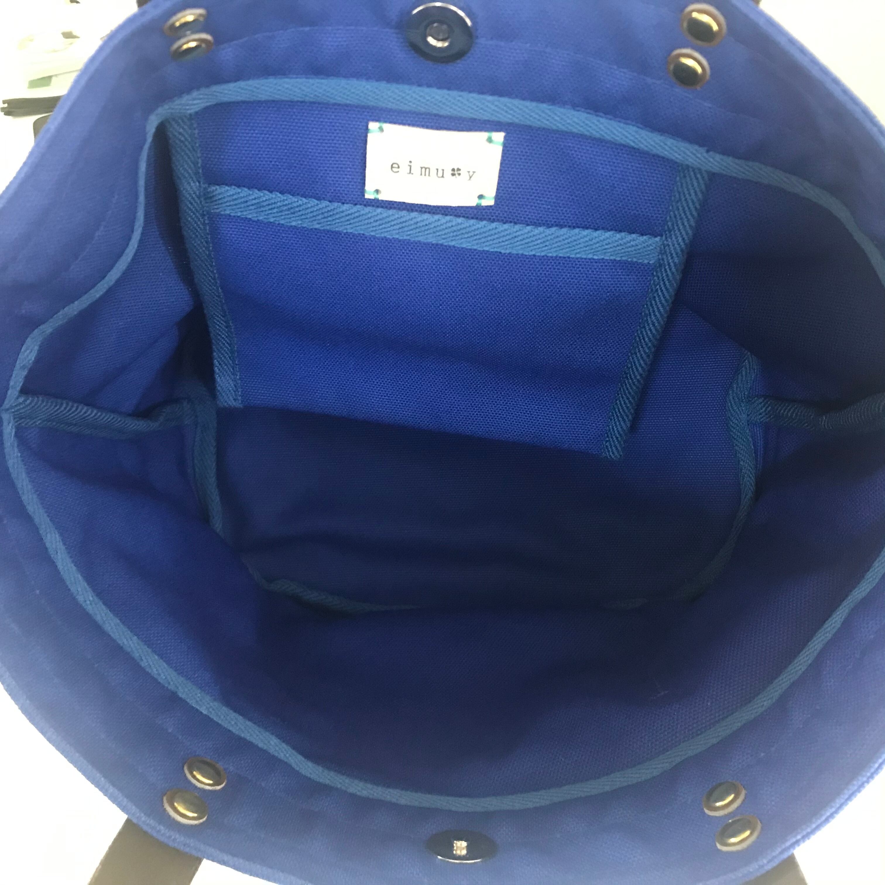内ポケットについているeimuy革タグも、障がいのある方々にひとつひとつ手作りしてもらっています。