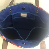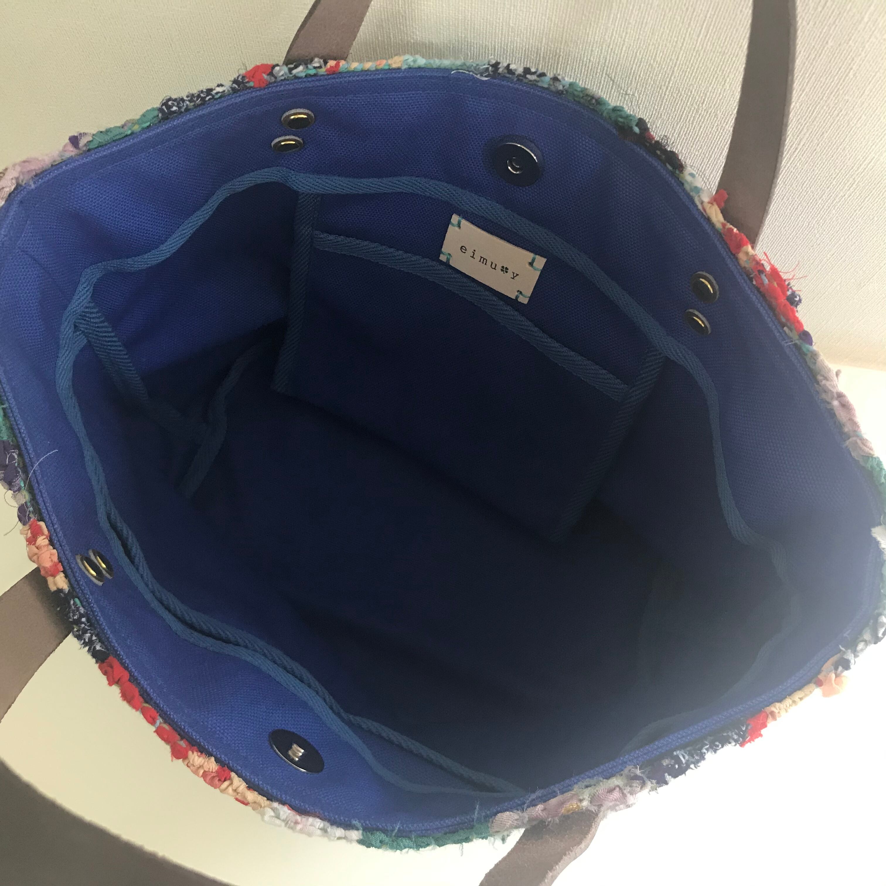 横浜市港北区のアートかれんさんで障がいのある方々がこつこつと素敵に織り上げた裂き織りを使って作ったトートバッグです。