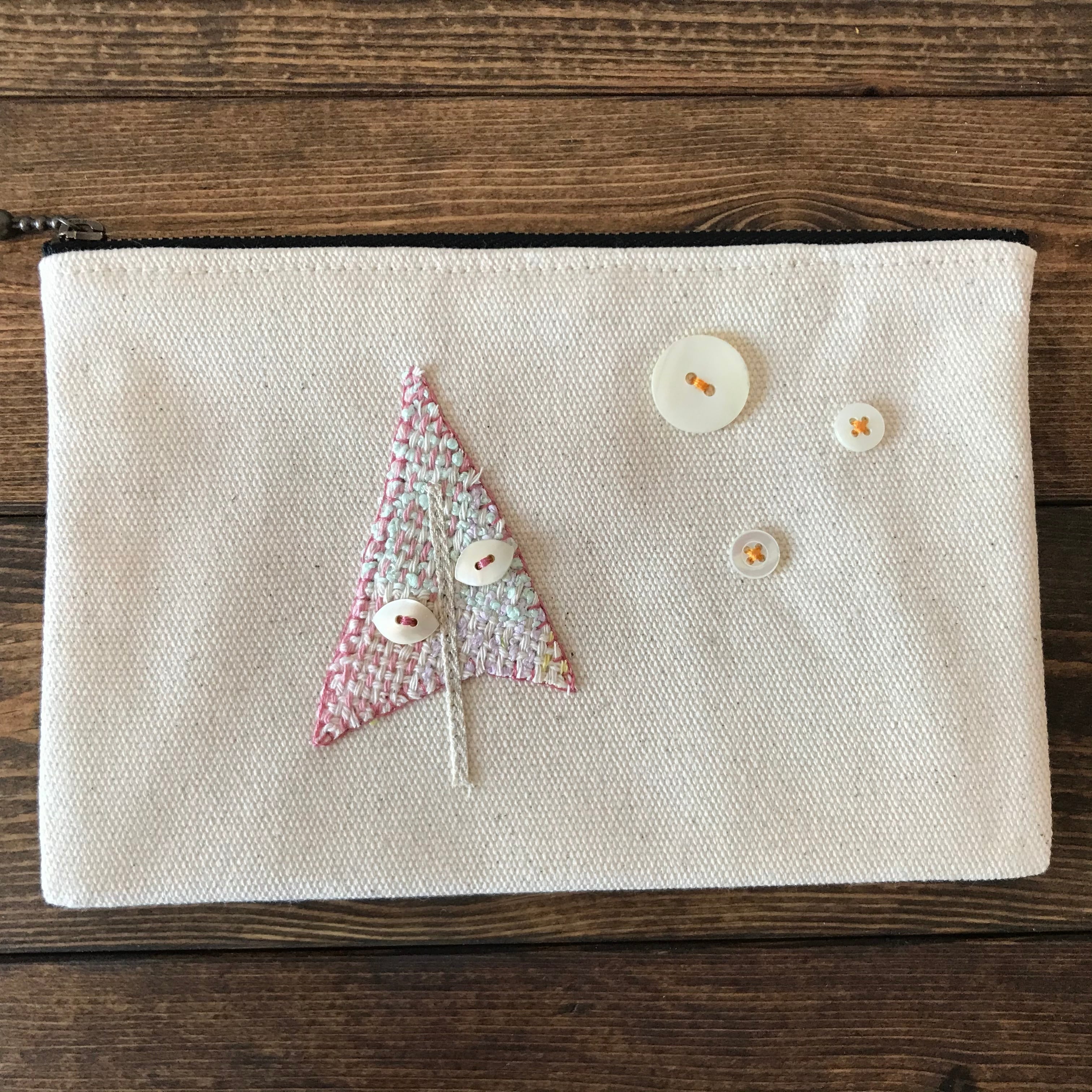 こちらのキャンバス地のポーチは、福祉作業所で障がいのある方々がこつこつと織り上げた素敵なさをり織りを使ってデザインしたオリジナルの一点物商品です。