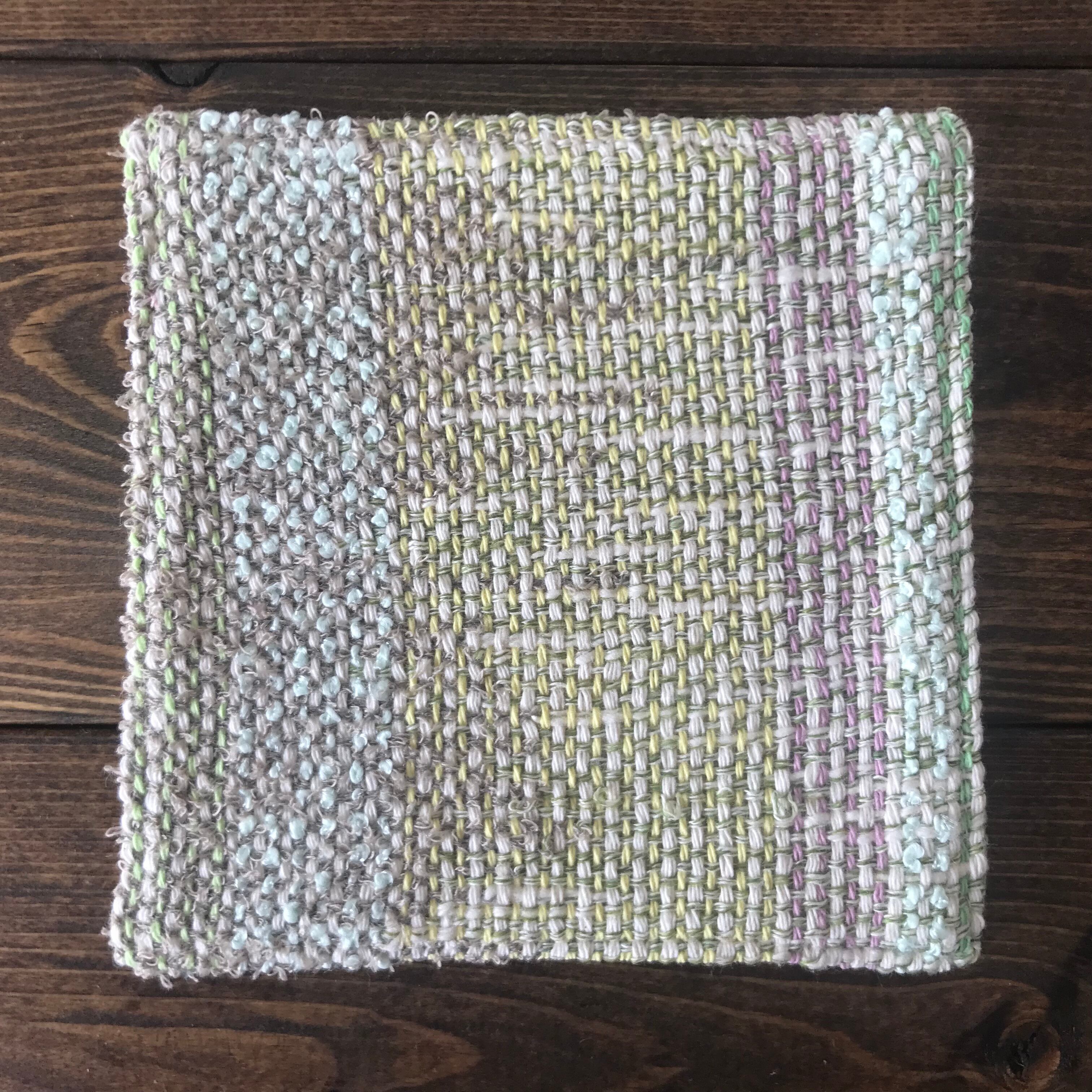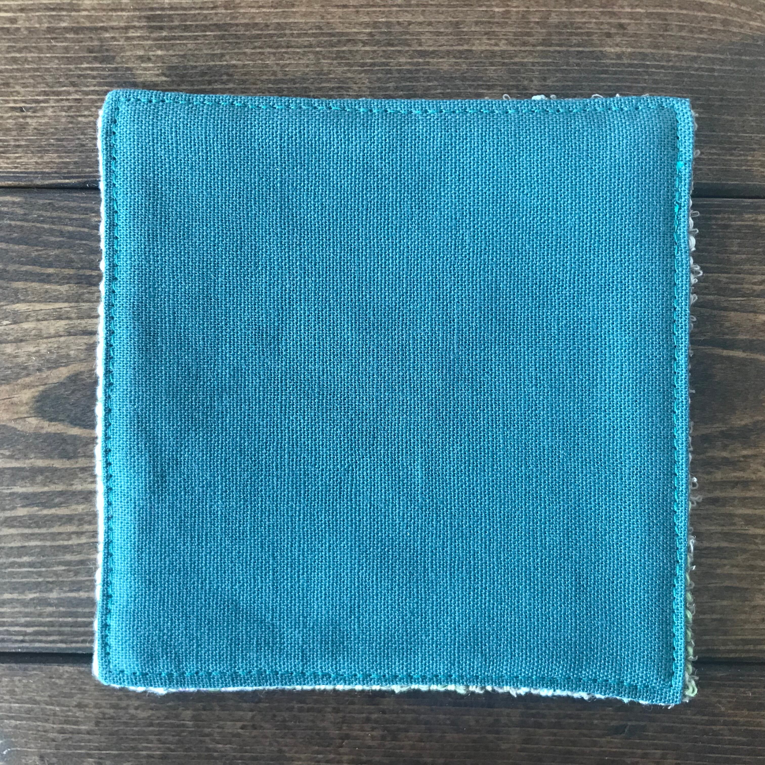 こちらのコースターは、福祉作業所で障害のある方が織り上げた素敵なさをり織りを使ってデザインしたオリジナルの一点物商品です。さをり織りと帆布のリバーシブルでお使いいただけます。