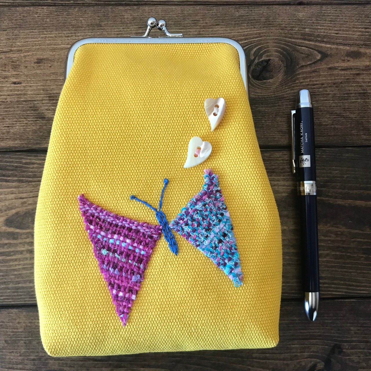 がまぐちポーチ大(さをり織りアップリケの一点物)