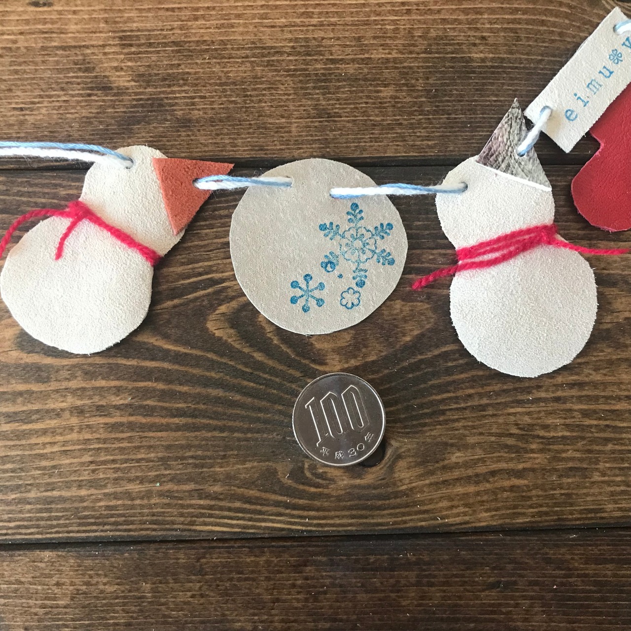革製のエイムワイオリジナル雪だるまミニガーランドです。