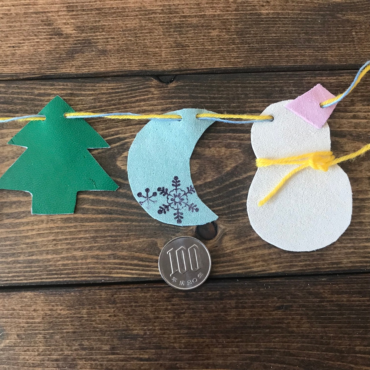 革製のエイムワイオリジナル雪だるまミニガーランドです。