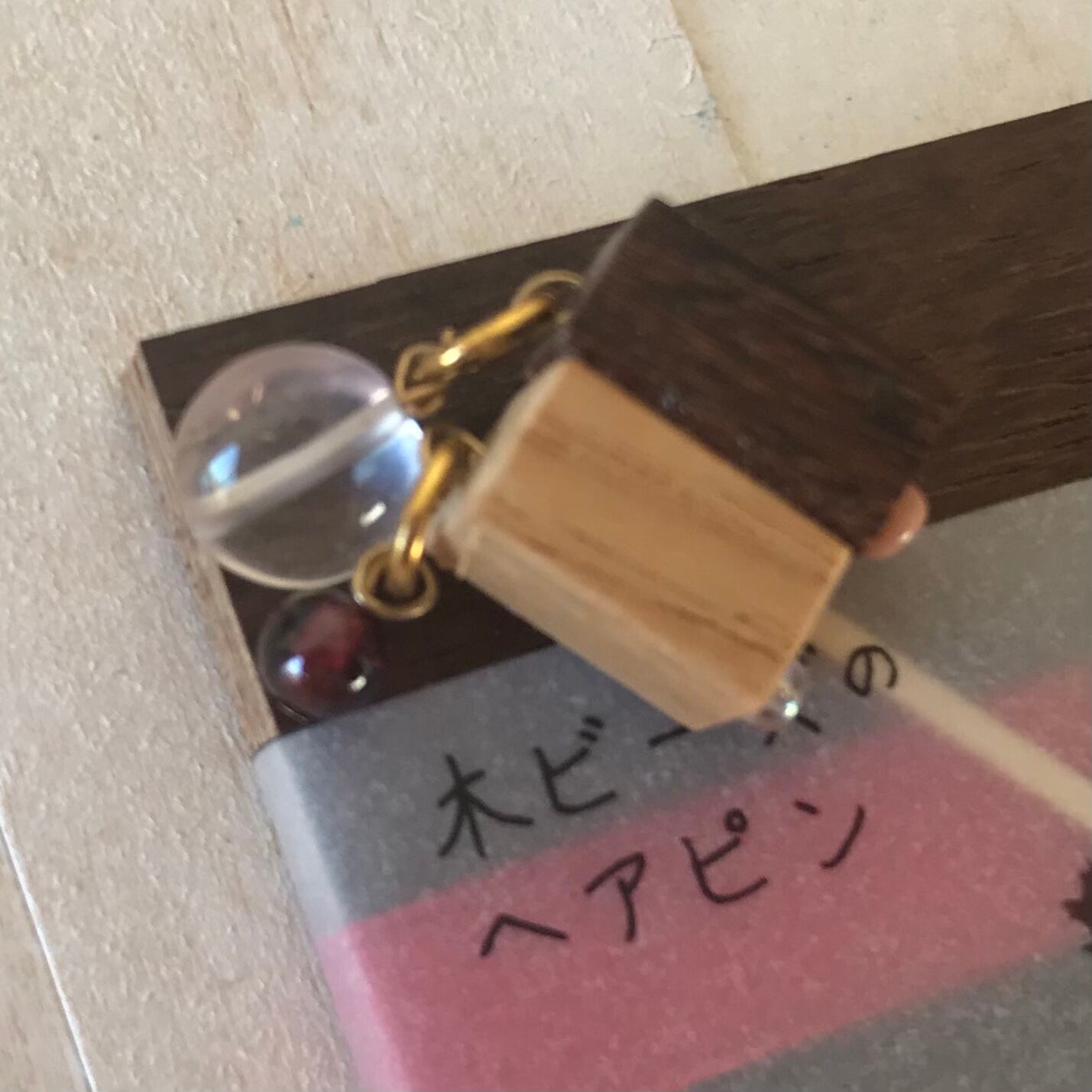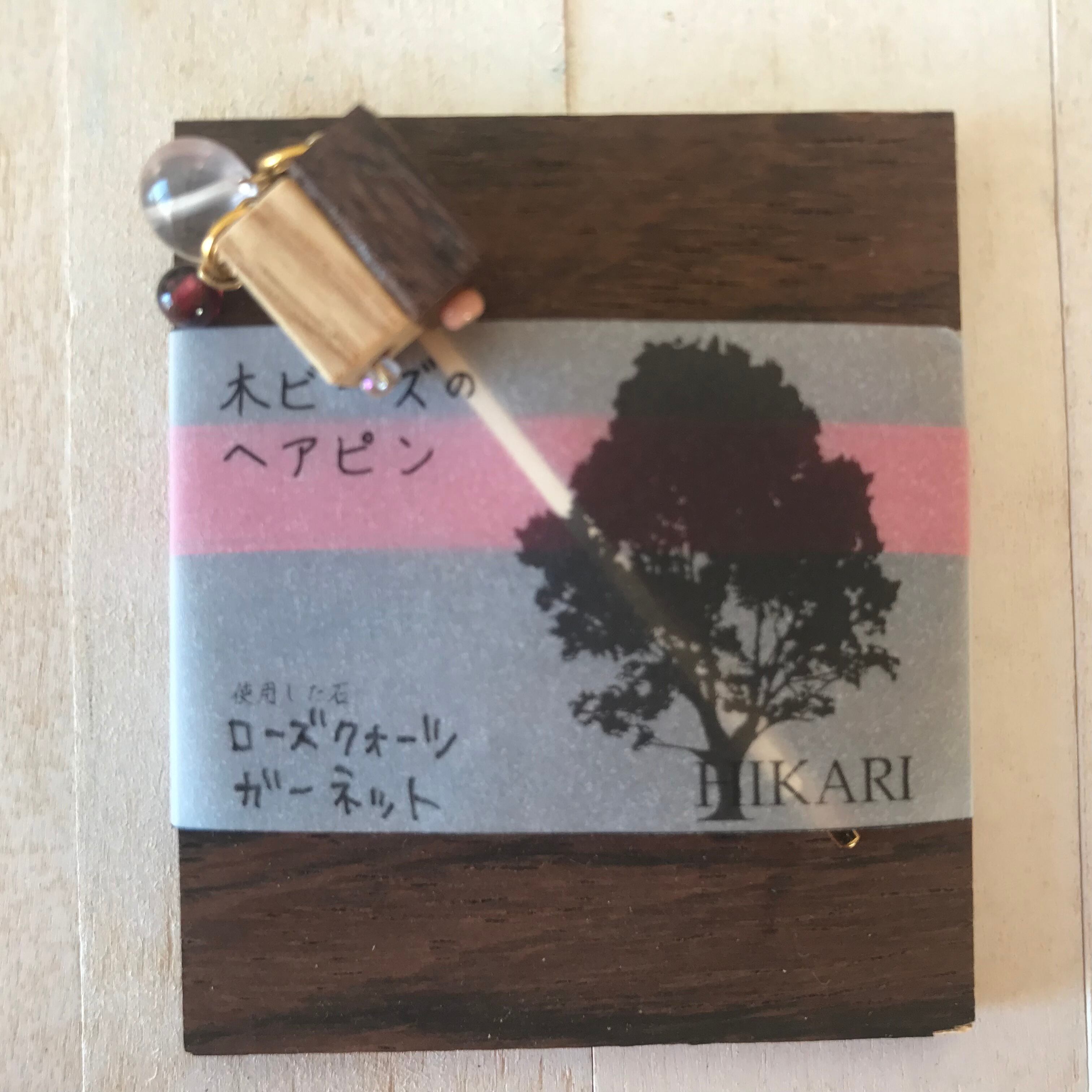 木&天然石ビーズのヘアピン(ローズクォーツ&ガーネット)