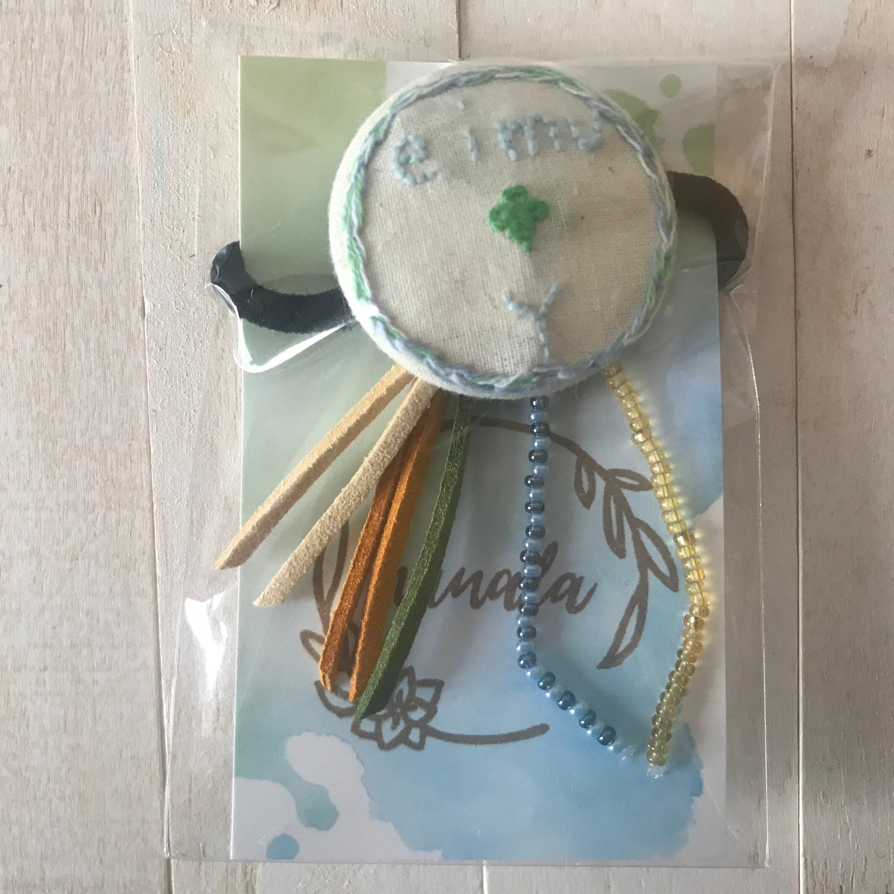 eimuyのロゴを刺繍してもらったオリジナルのヘアゴムです。
