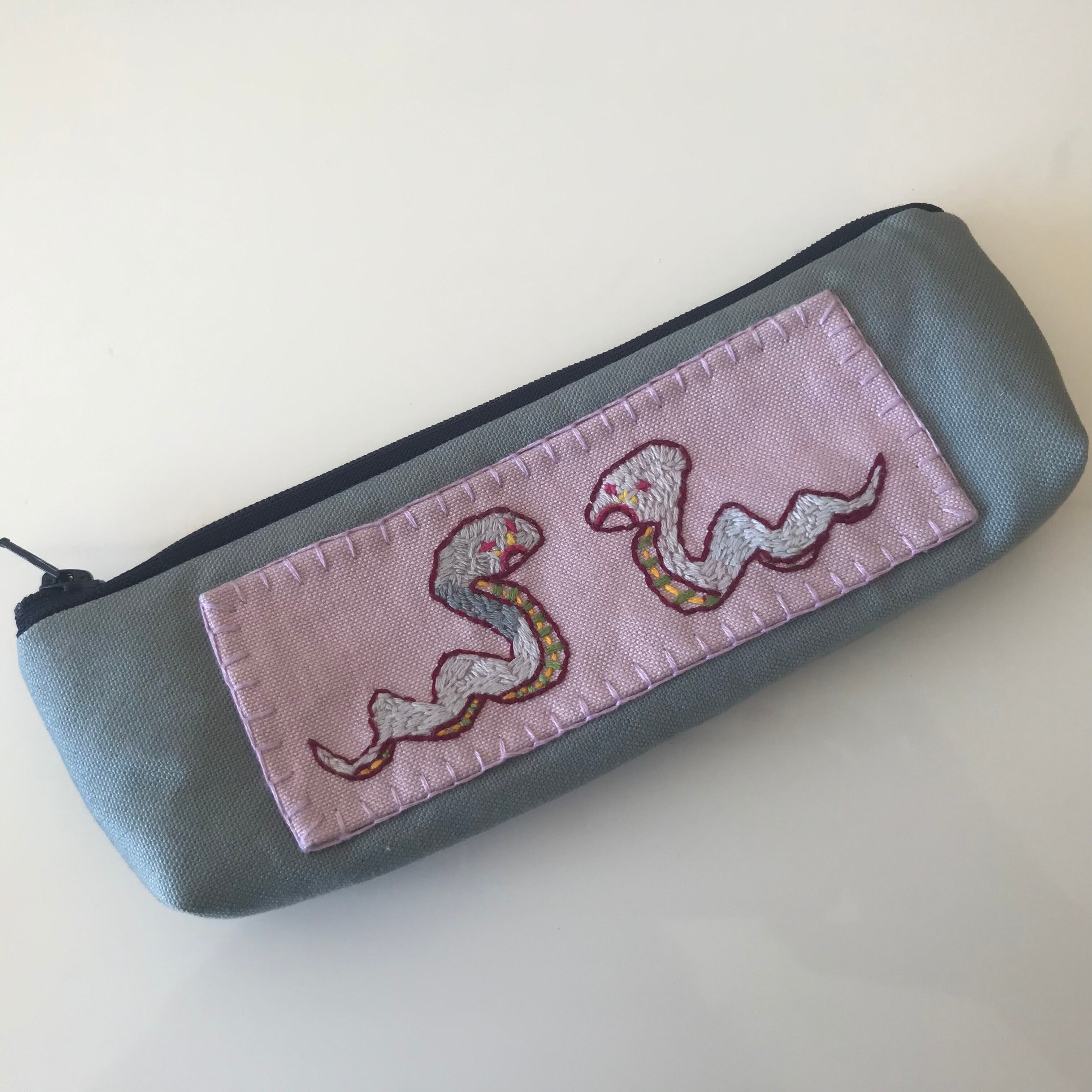 ひとつひとつ手作業で刺繍を施した可愛いペンケース。
