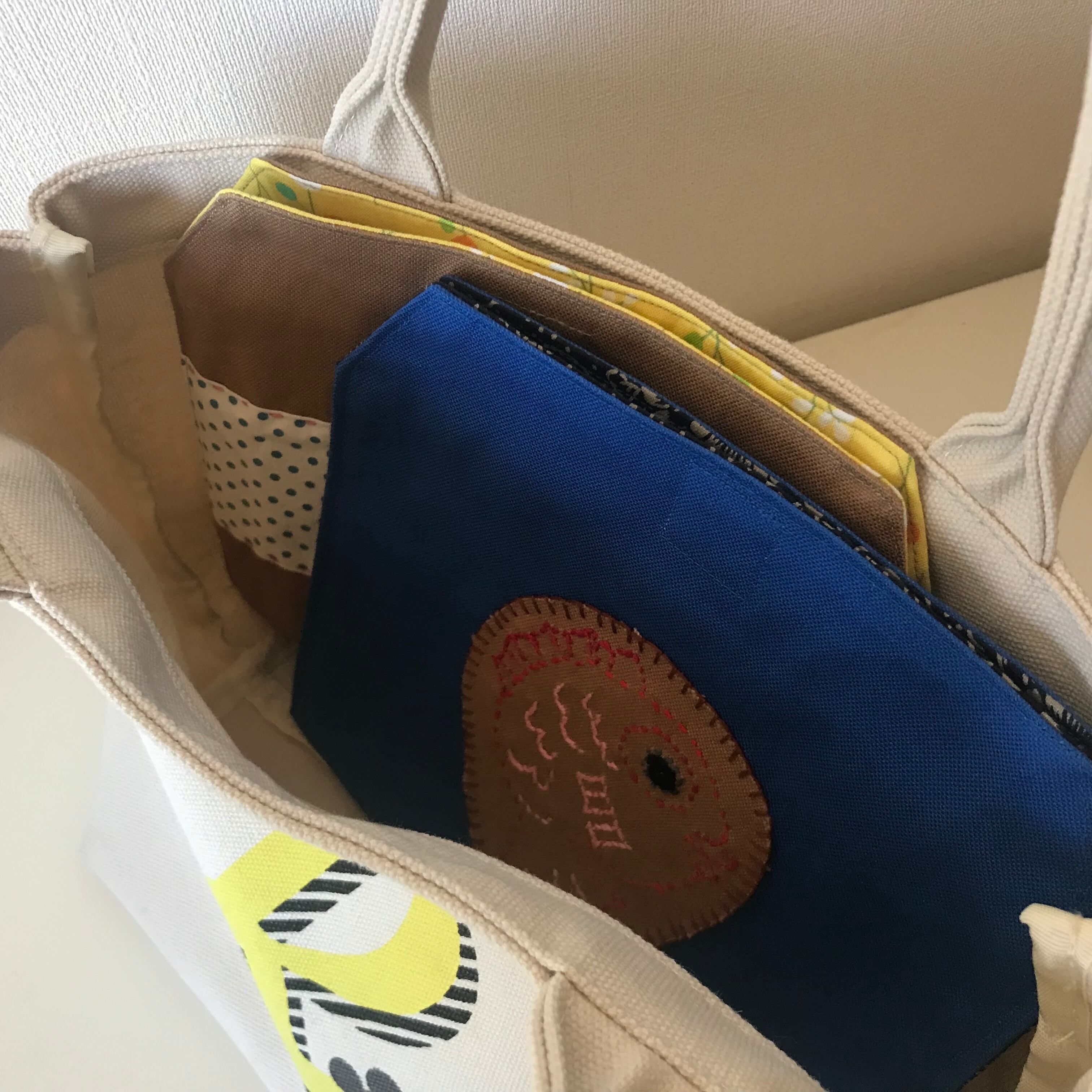 中が仕切られていてマジックテープが付いている、バッグの中の小物をまとめるのに便利なポーチです。