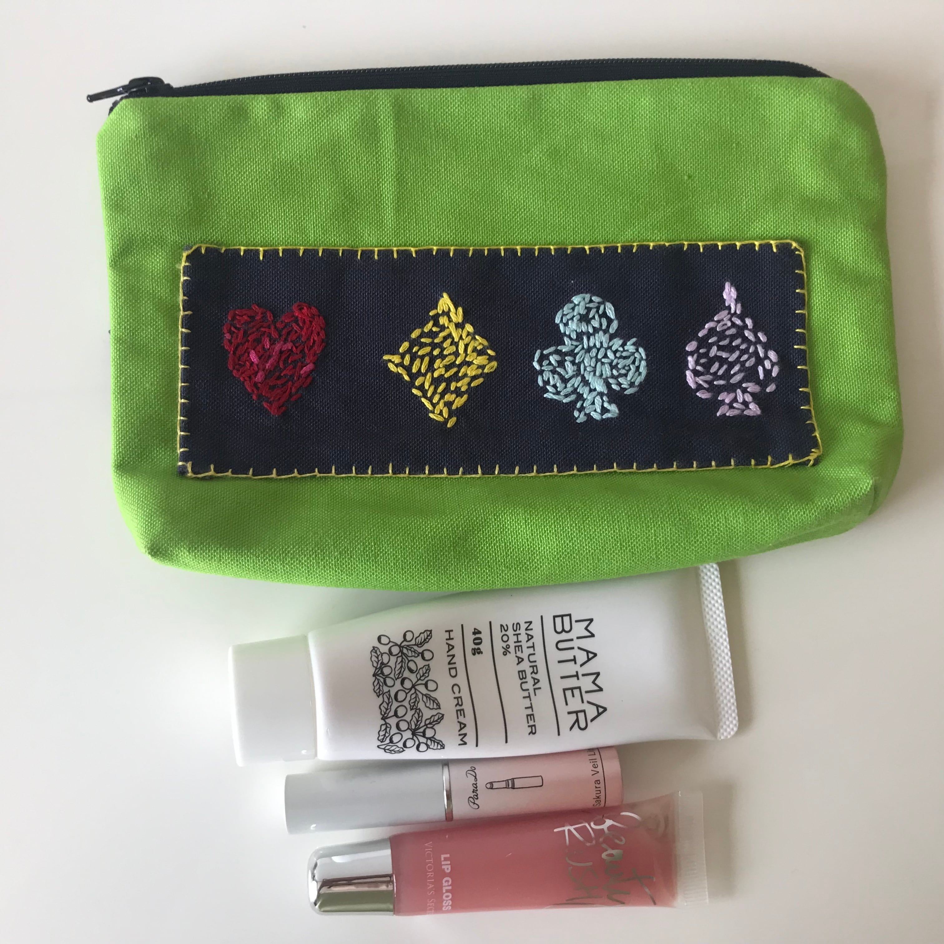片面ずつ違う刺繍やレースを施した一点物の手作りポーチです。