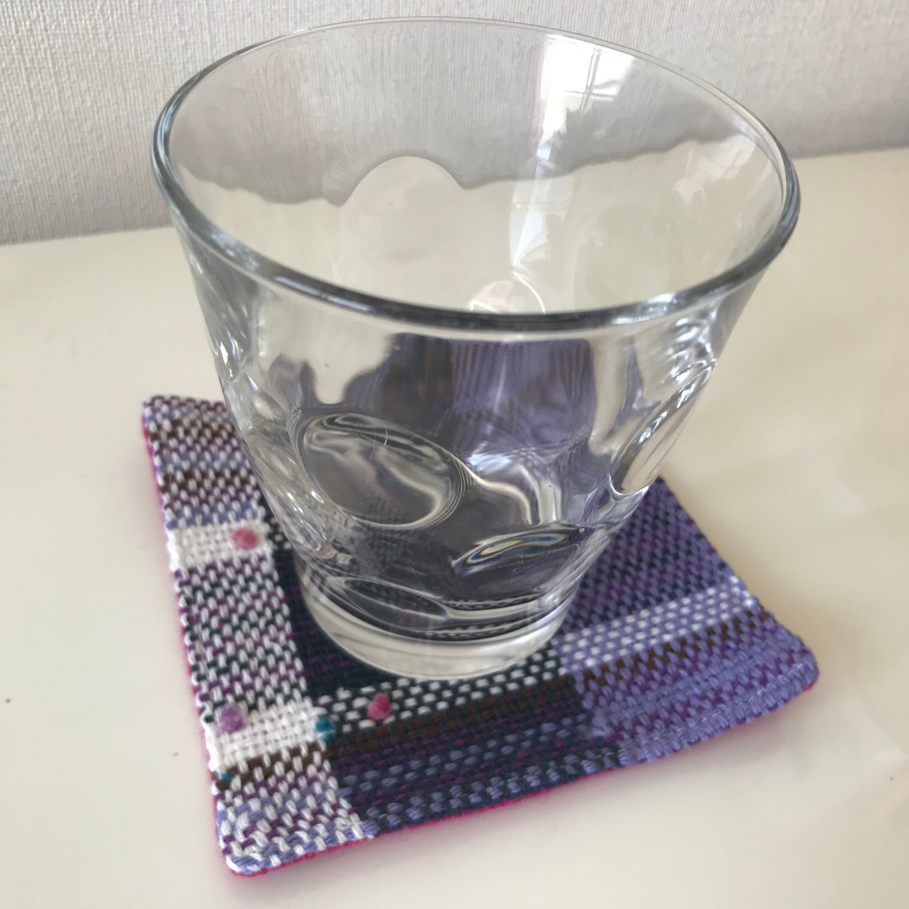 さをり織り×麻のリバーシブル一点物コースター
