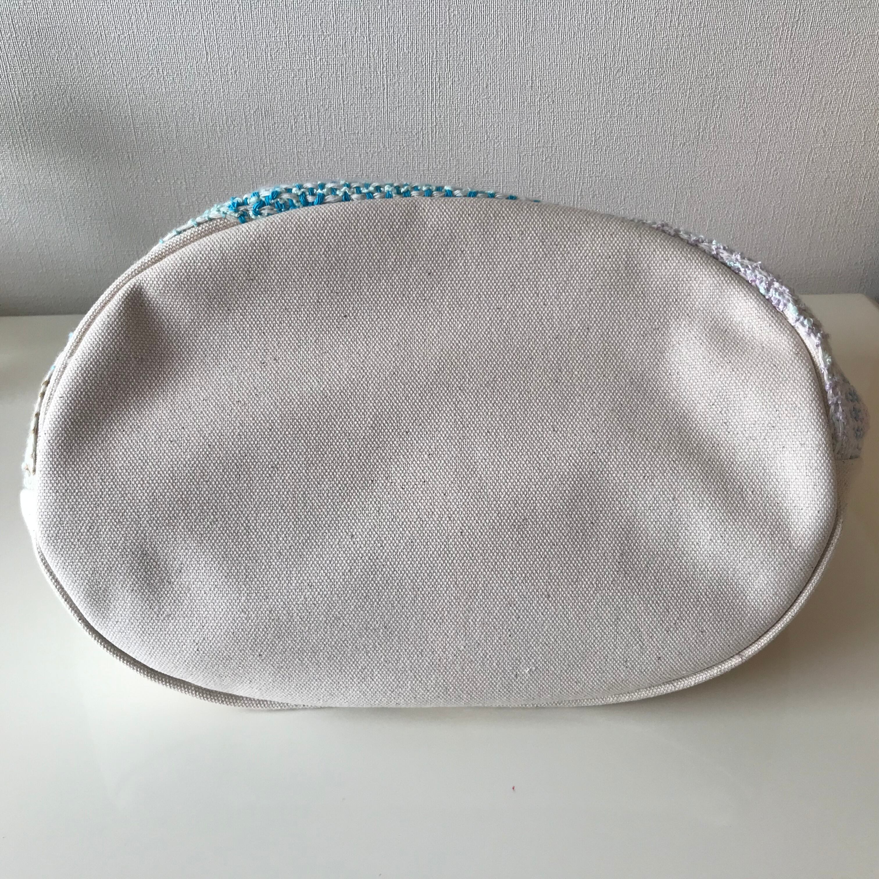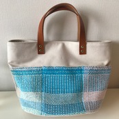 福祉作業所で障がいのある方々がこつこつと素敵に織り上げたさをり織りを使って作ったトートバッグです。