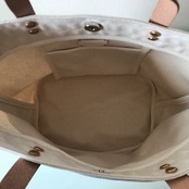 内ポケットについているeimuy革タグも、障がいのある方々にひとつひとつ手作りしてもらっています。