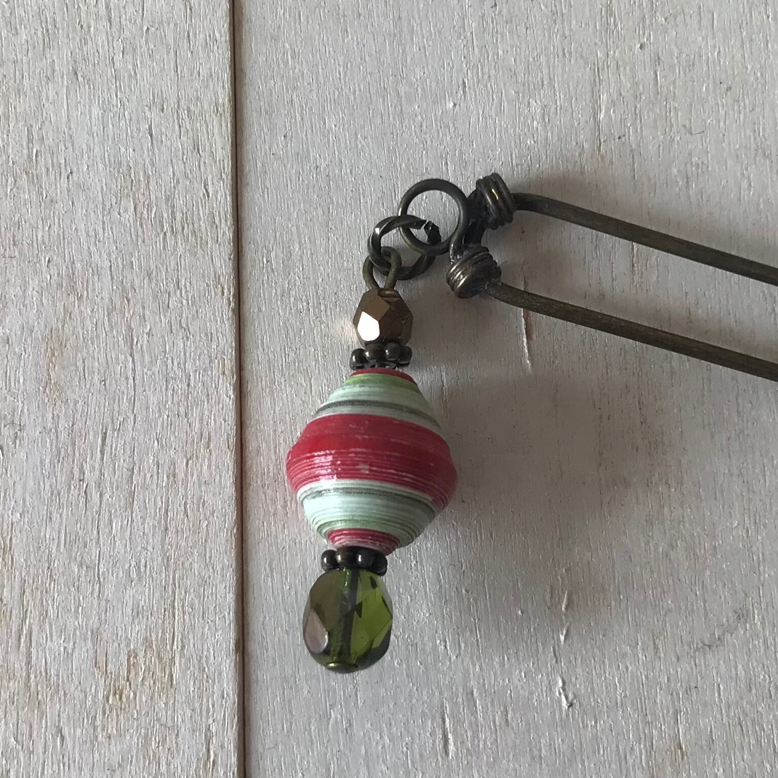 ペーパーミラクルズさんのペーパービーズに、他のビーズやパーツを組み合わせています。