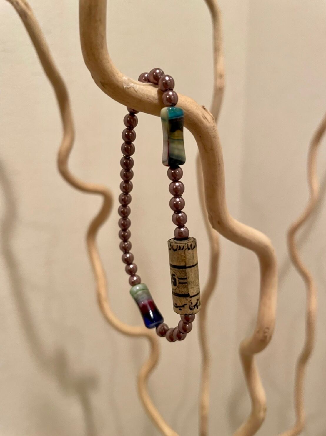 ペーパービーズはパキスタンのカレンダーやウルドゥー語の新聞紙から出来ています。