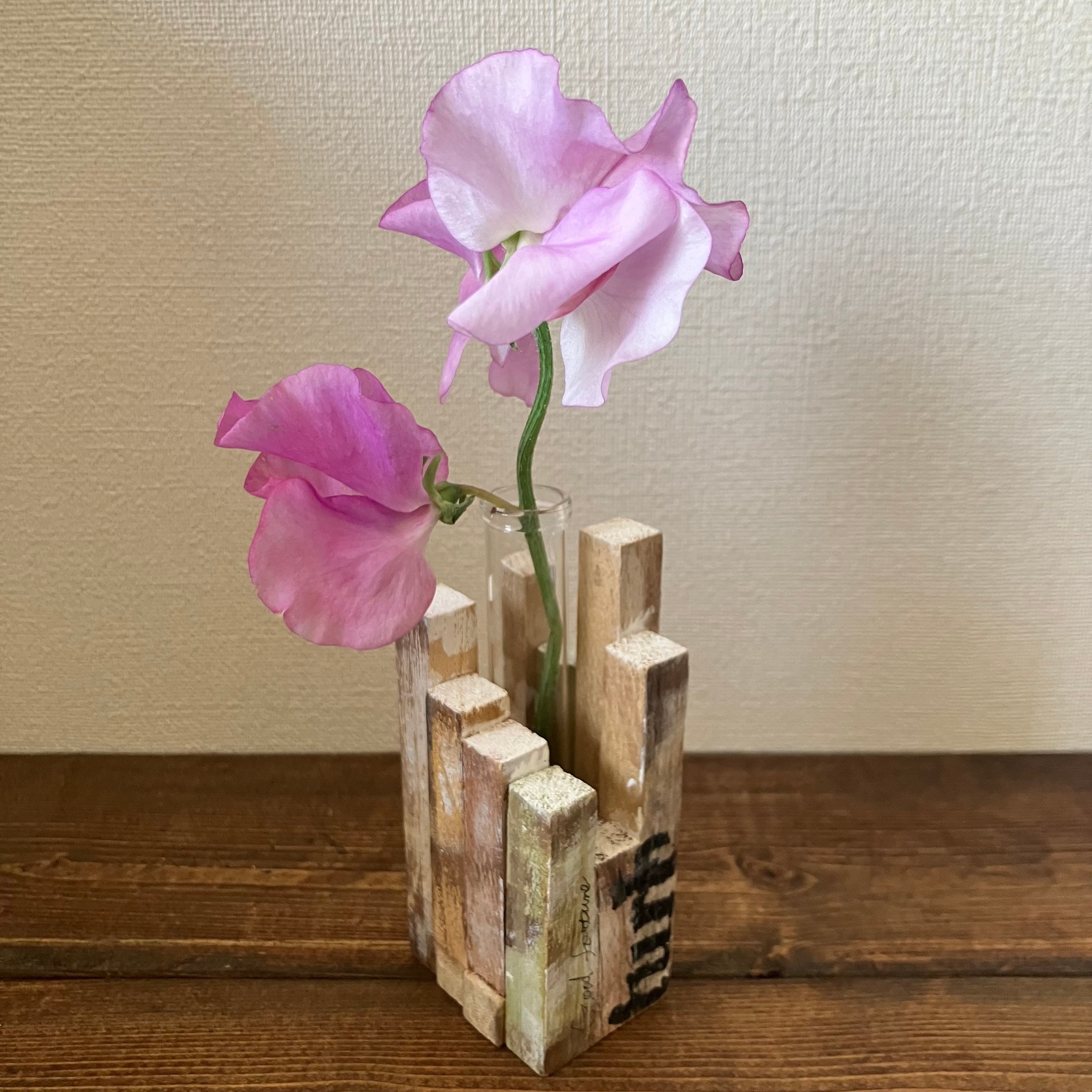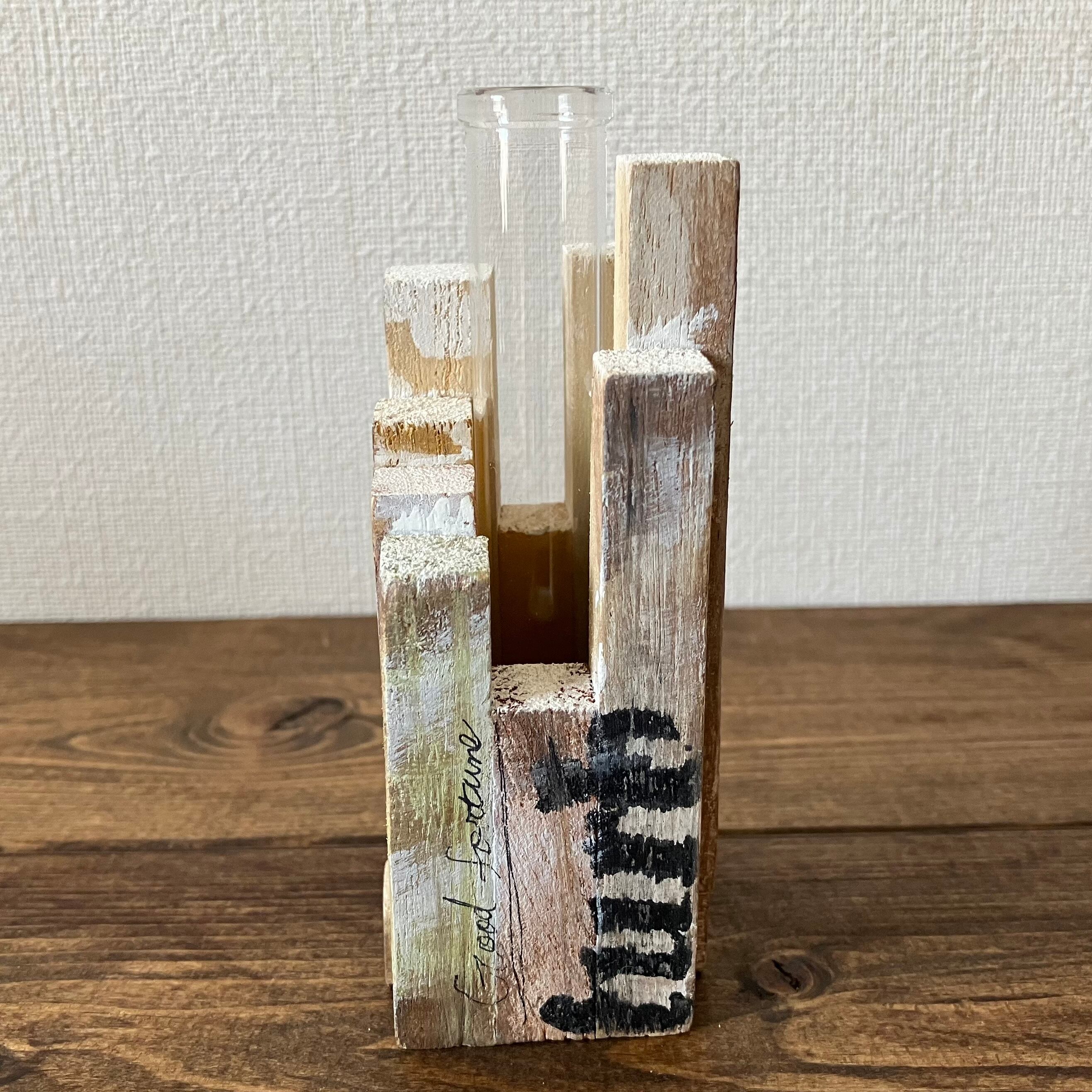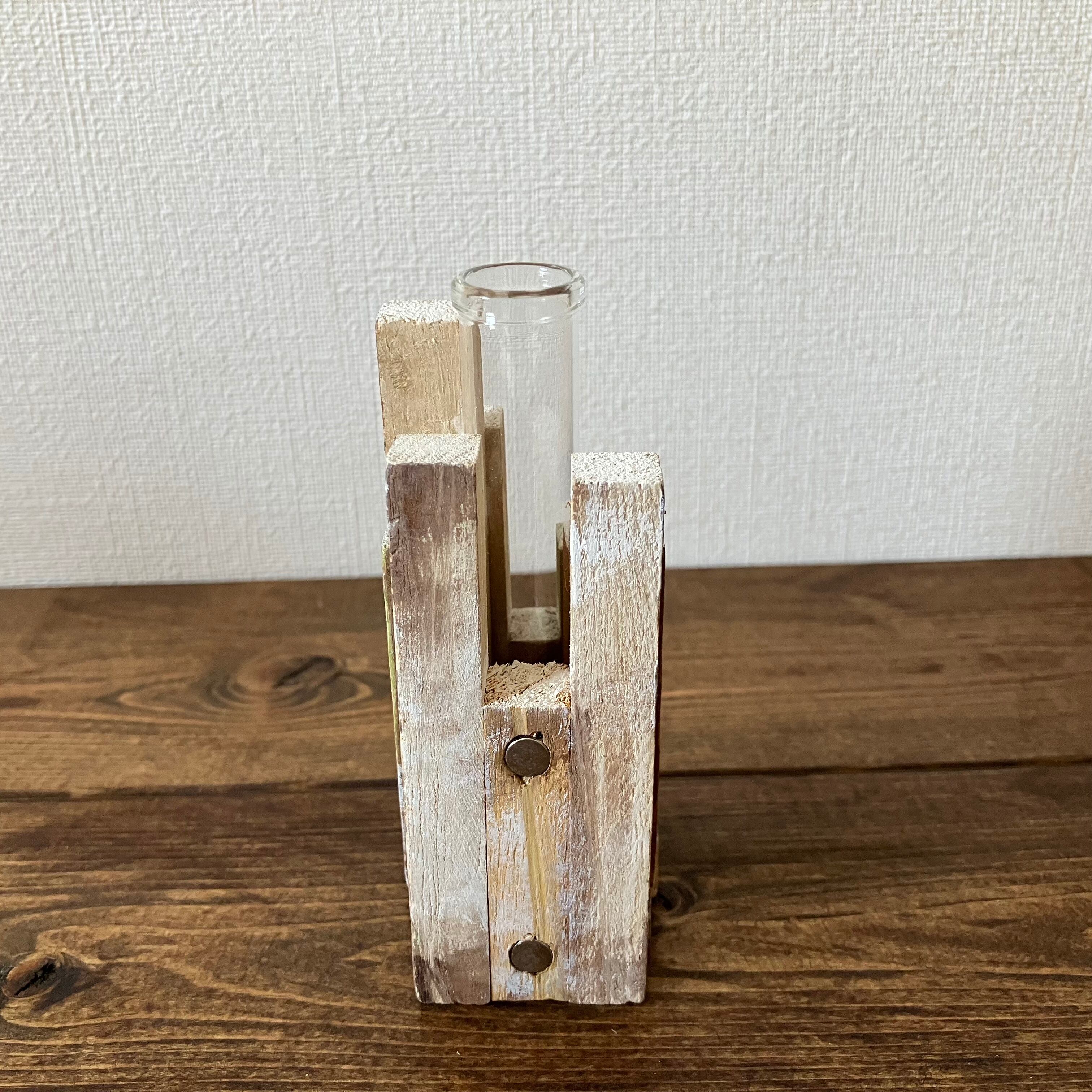 木と試験管を組み合わせて作ったオシャレな一輪挿しです。