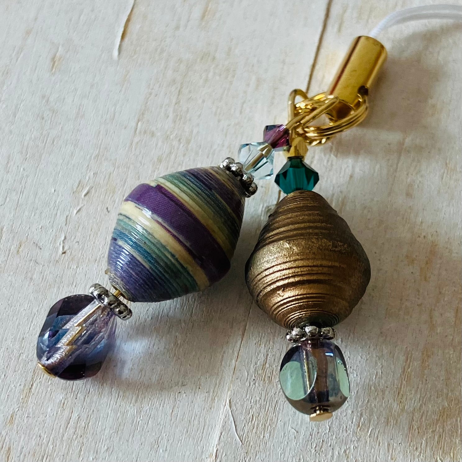 ペーパーミラクルズさんのペーパービーズに、他のビーズやパーツを組み合わせています。