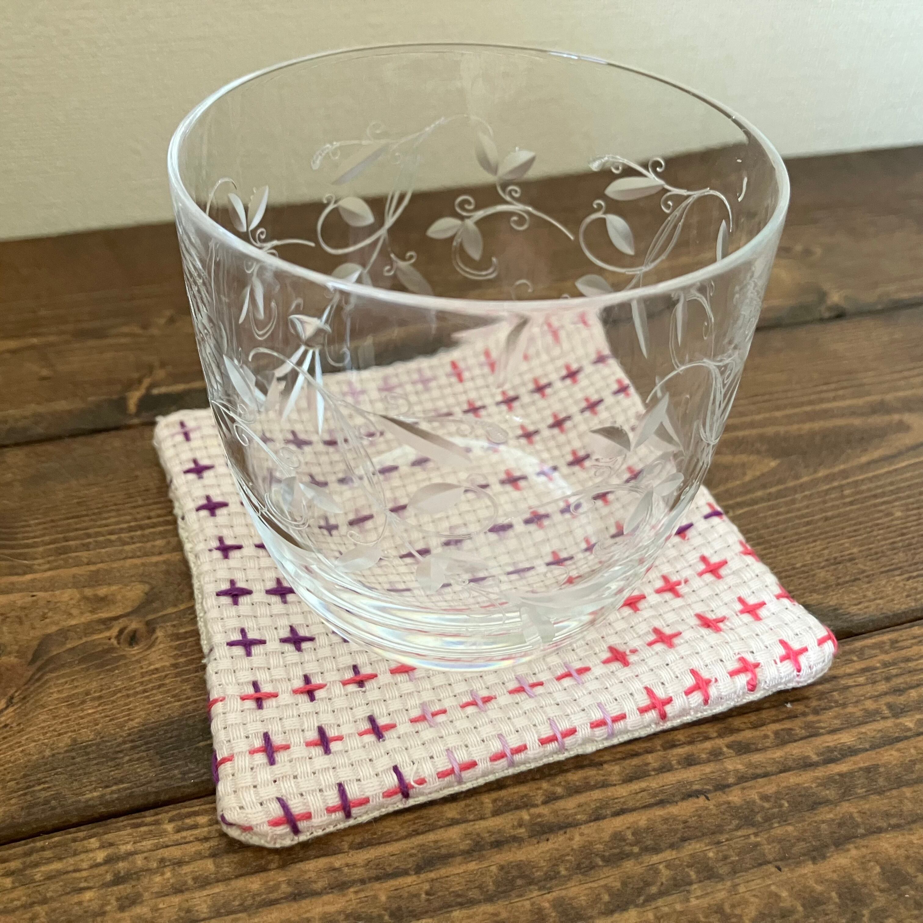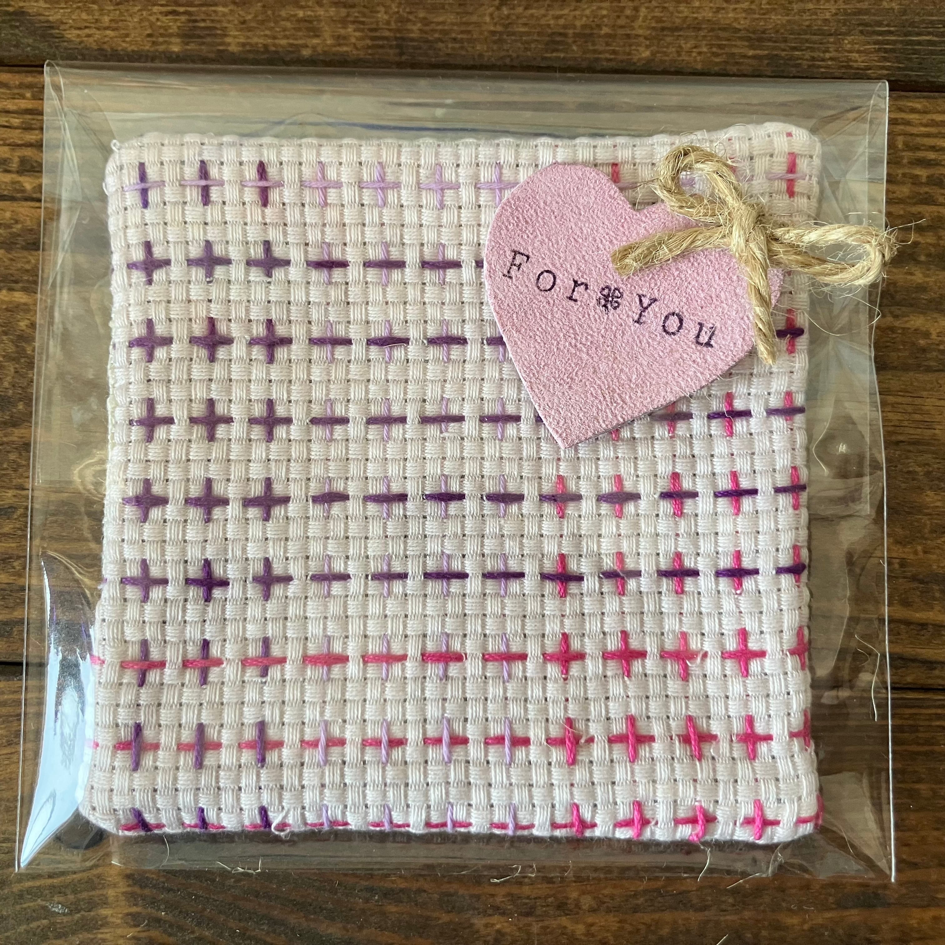(製作: コースター/地域活動支援センターHIKARI、ハート型革タグ/地域活動支援センターはーと工房)