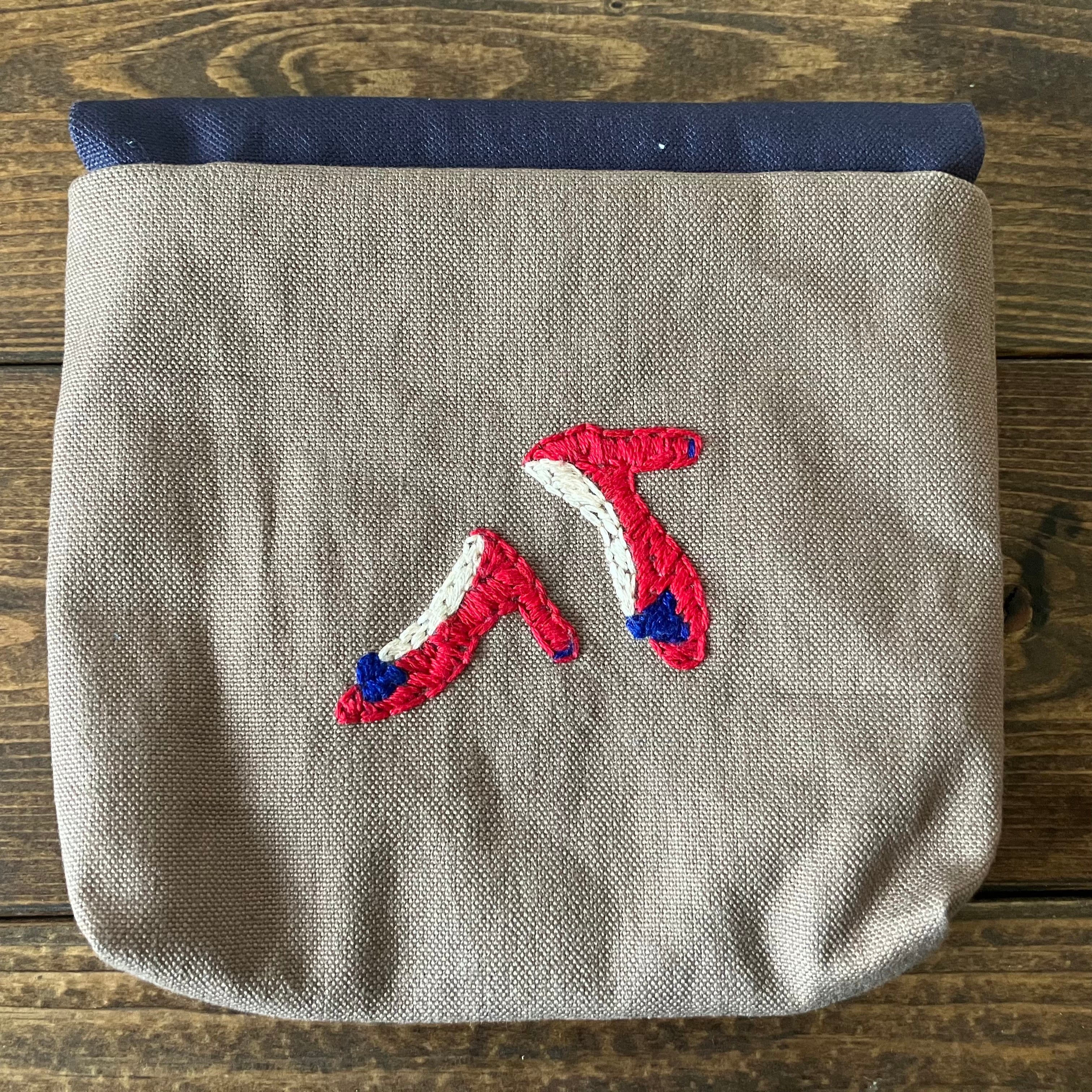 ハイヒールの刺繍を施しています。