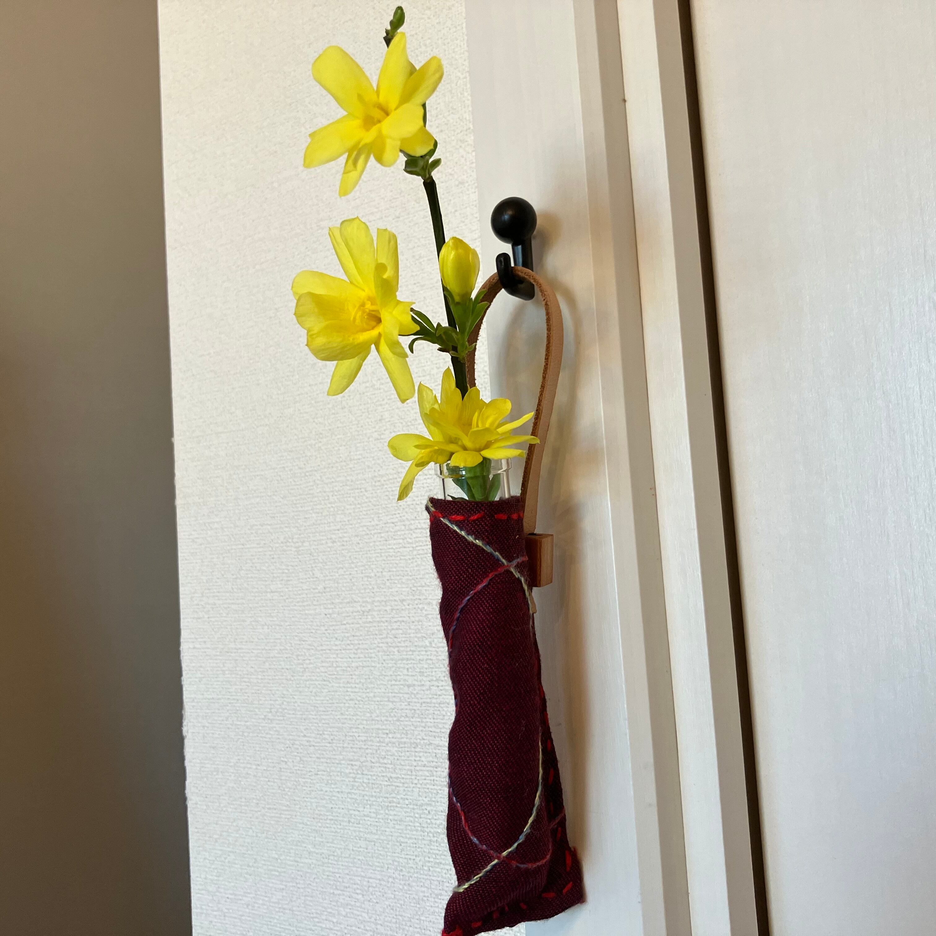 布と試験管を組み合わせて作ったオシャレな一輪挿しです。
