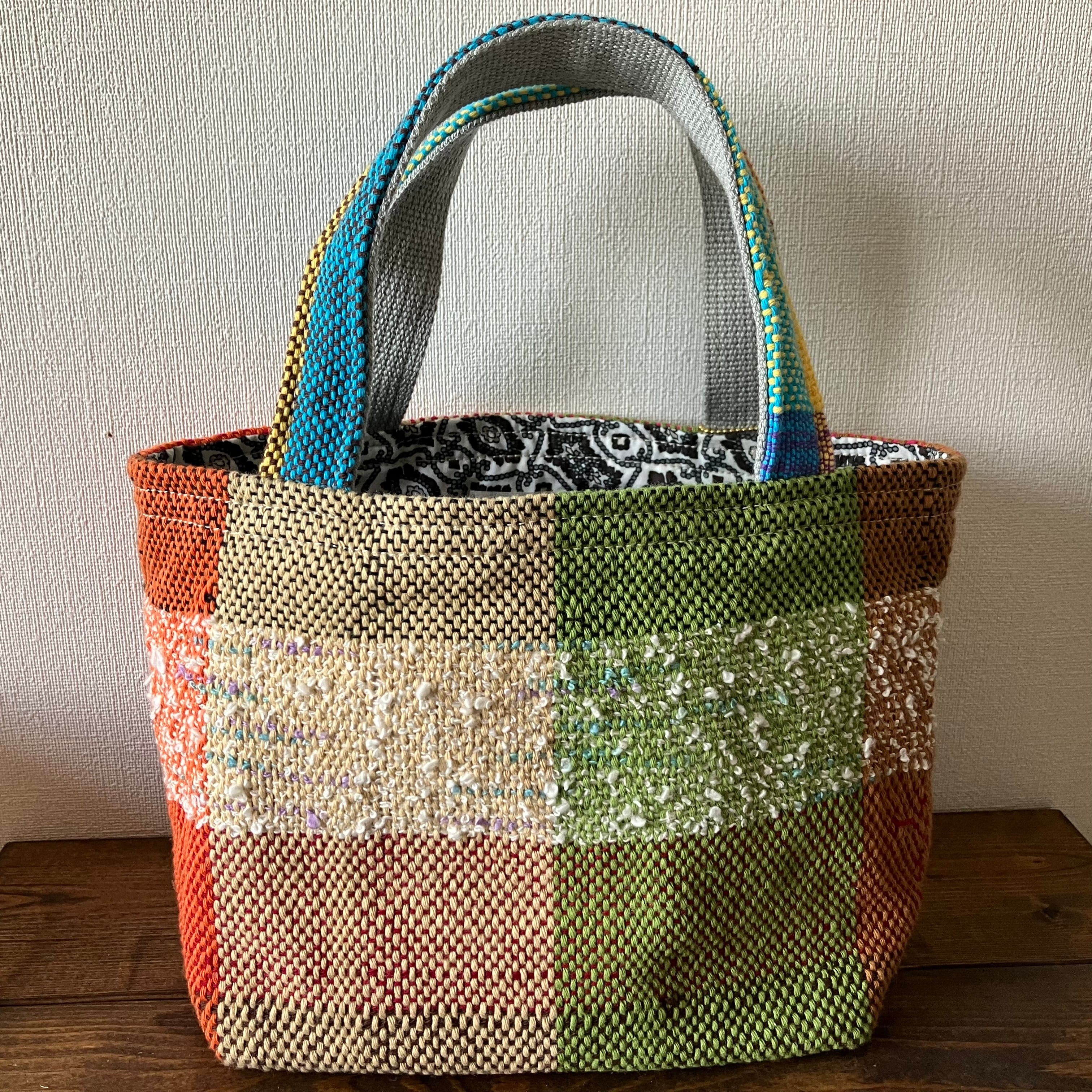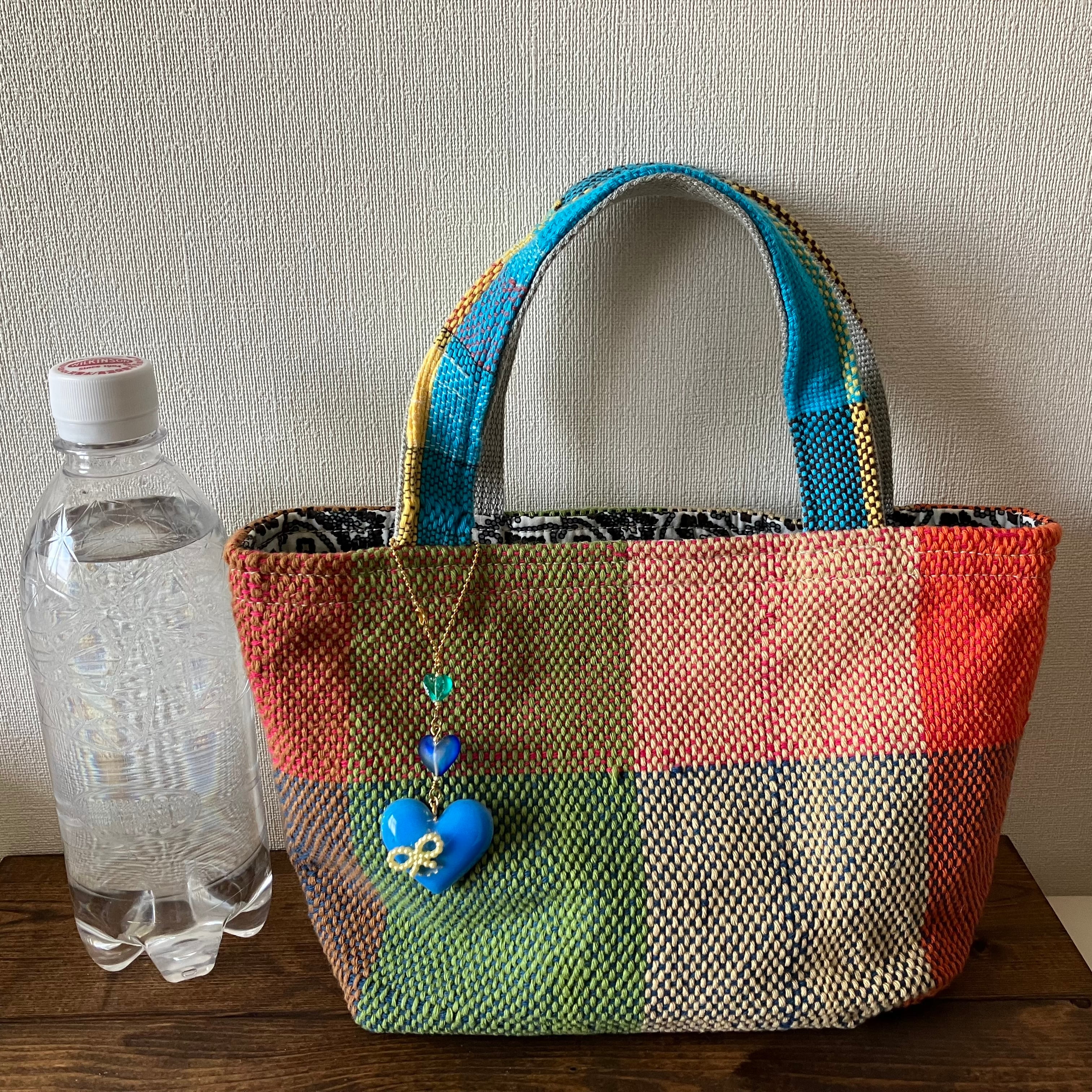 さをり織り一点物ミニバッグ(レジンのチャーム付)