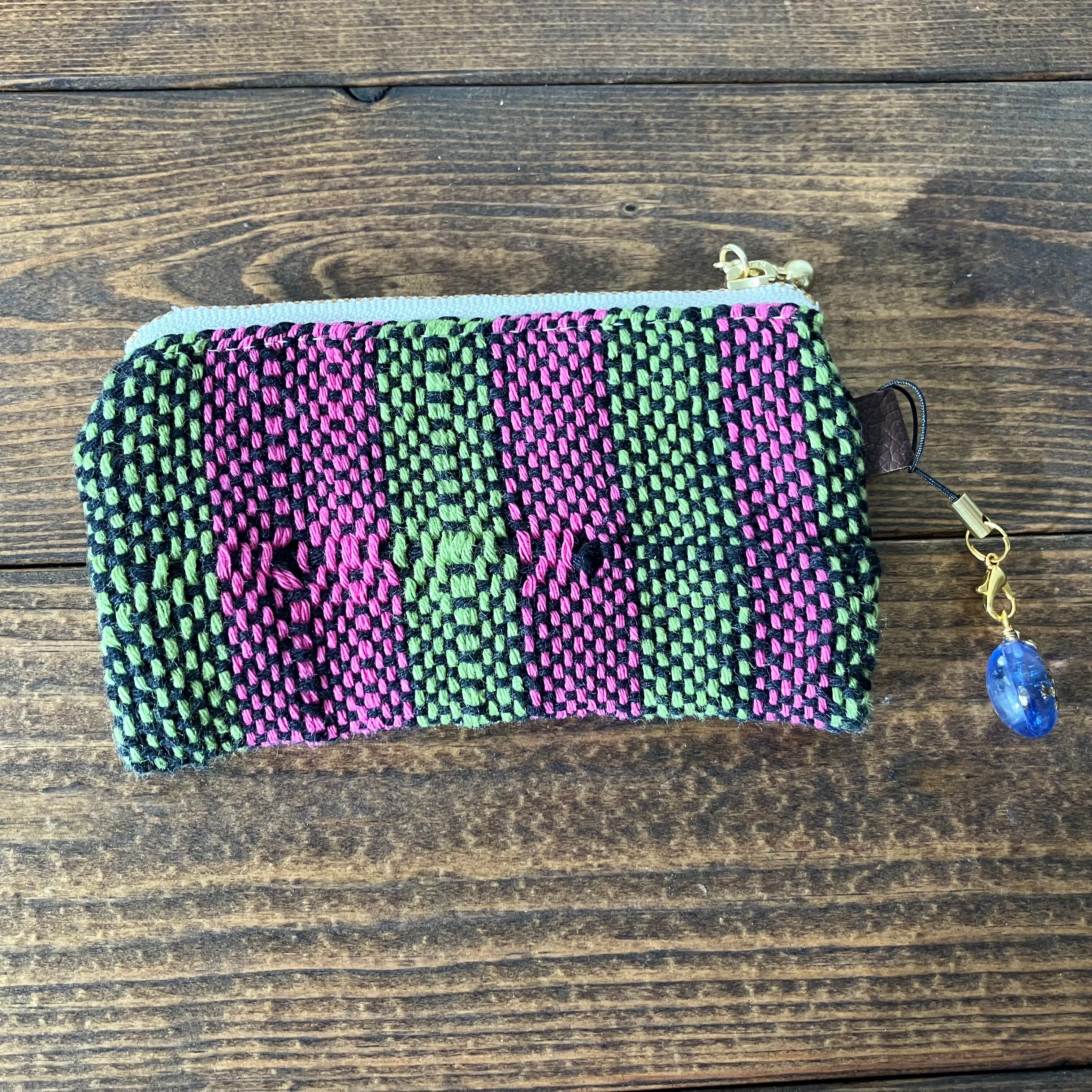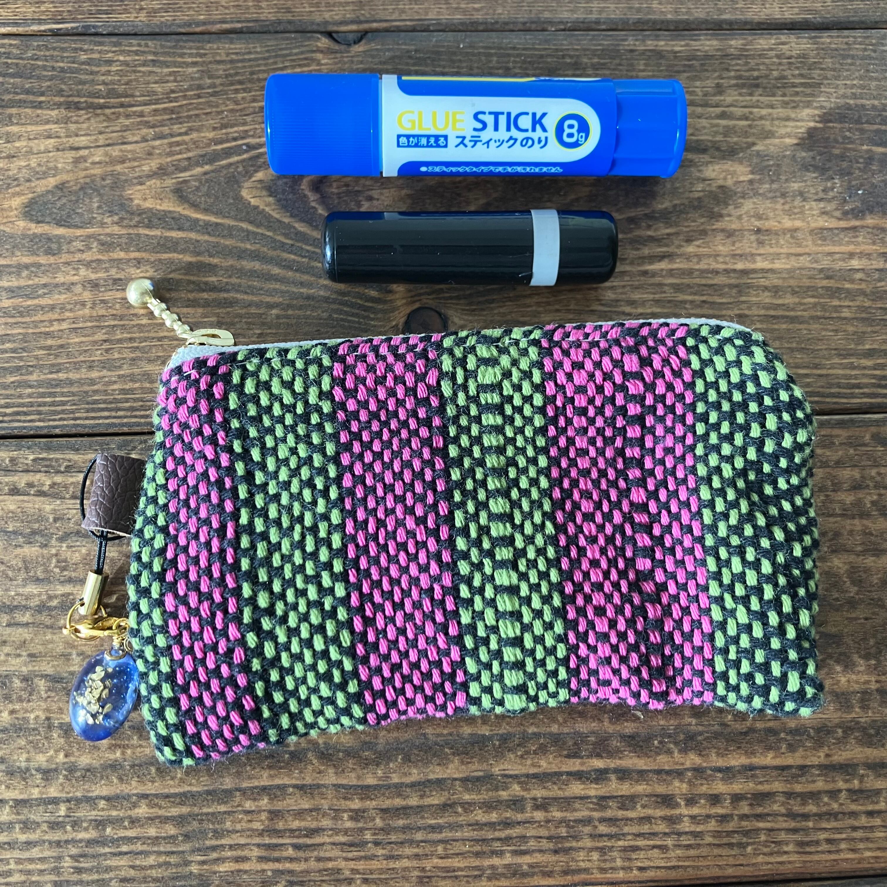 さをり織り一点物小物入れ(レジンのチャーム付)