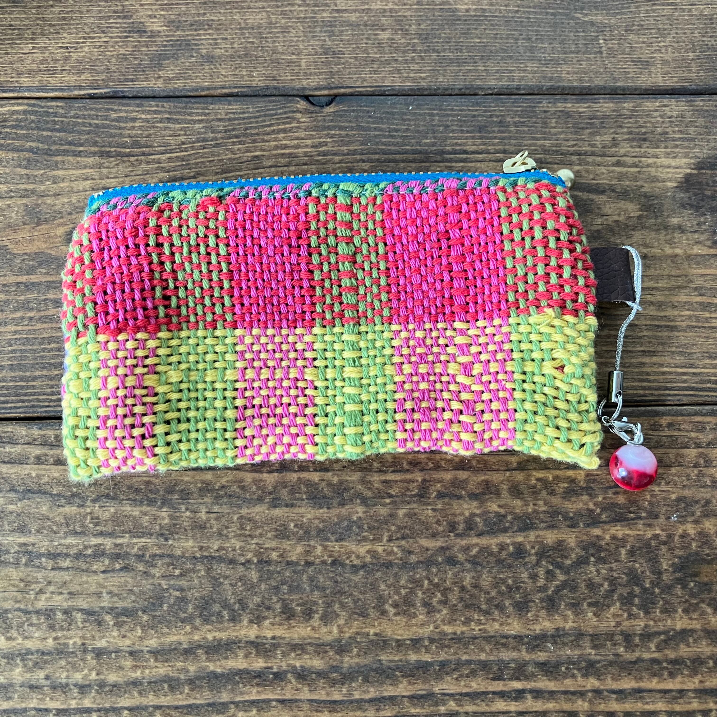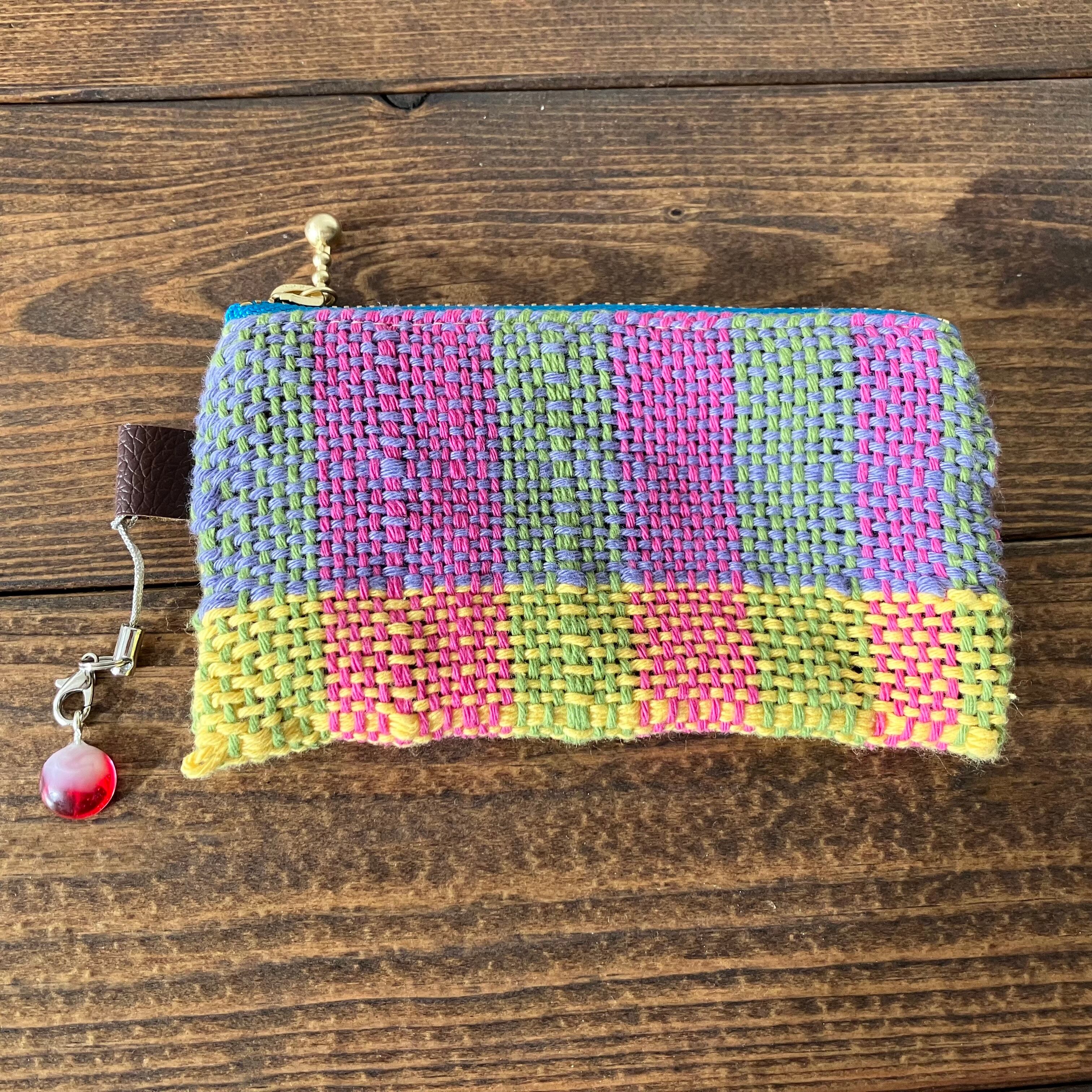 さをり織り一点物小物入れ(レジンのチャーム付)