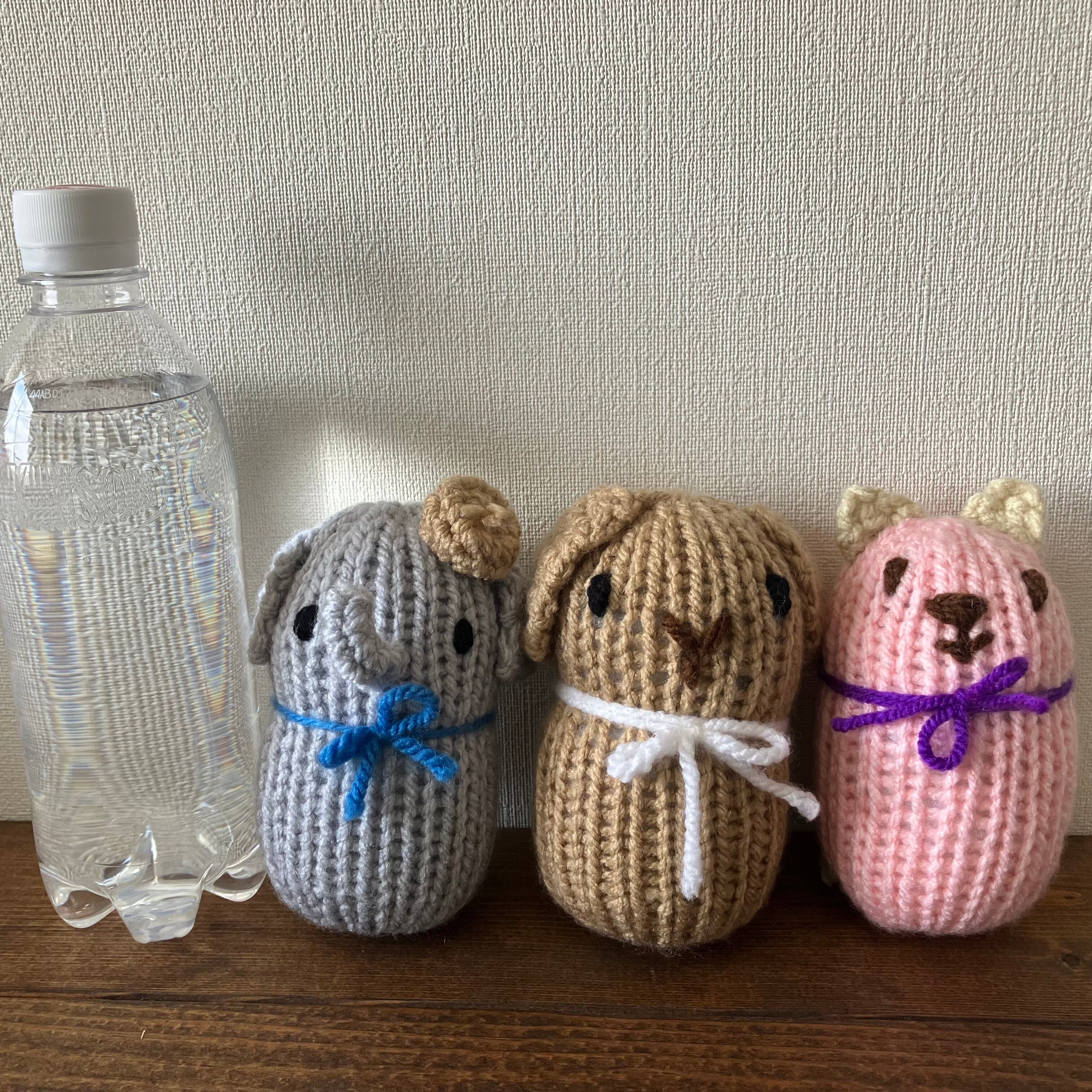 3枚目は500mlのペットボトルや他の編みぐるみと比較した画像です。