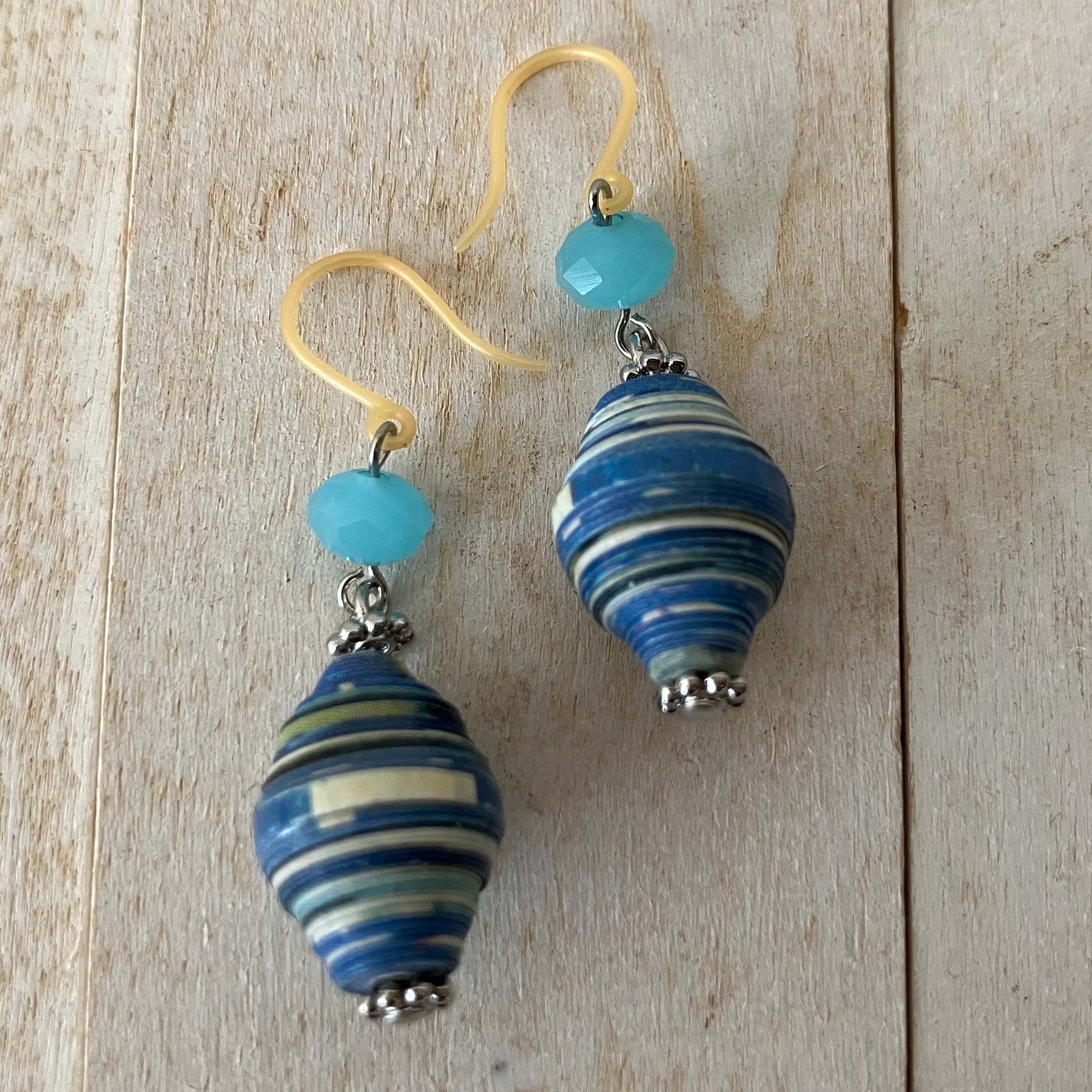 ペーパーミラクルズさんのペーパービーズに、他のビーズやパーツを組み合わせています。